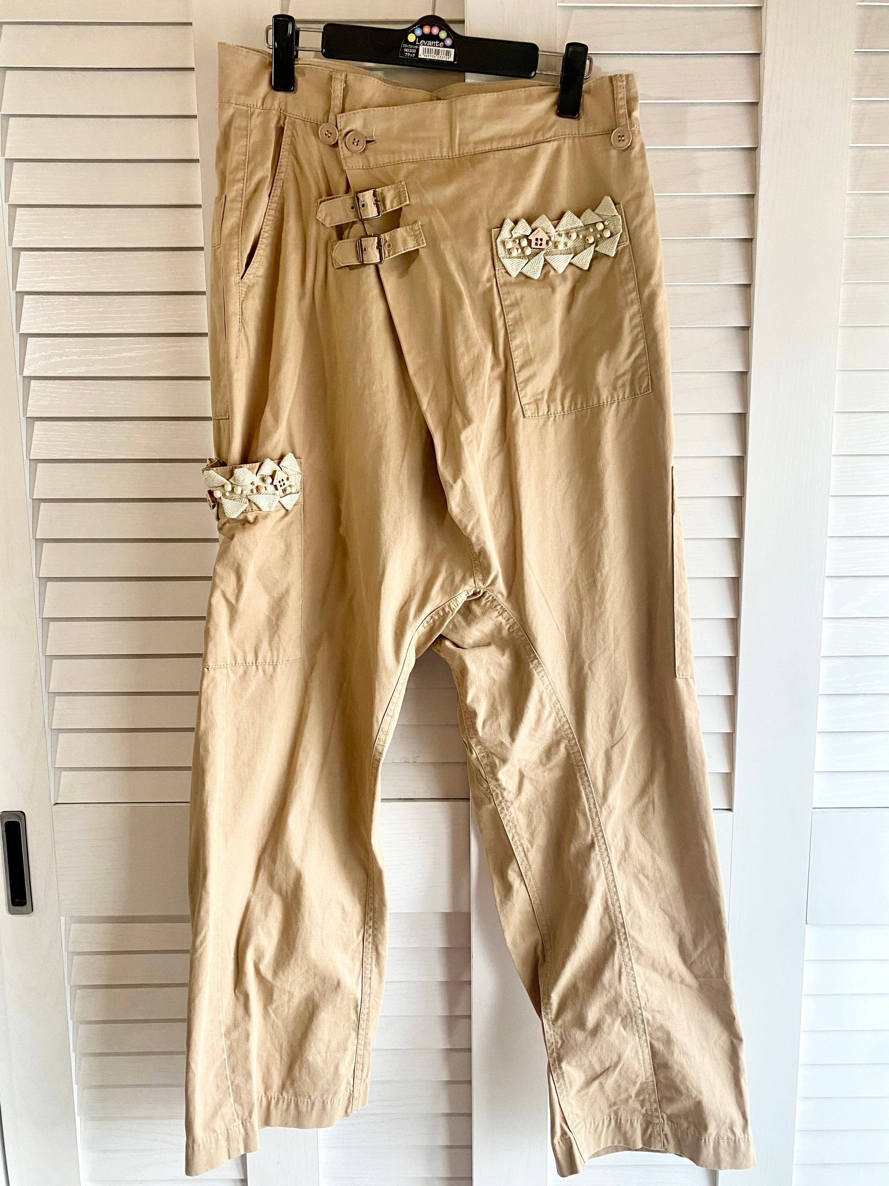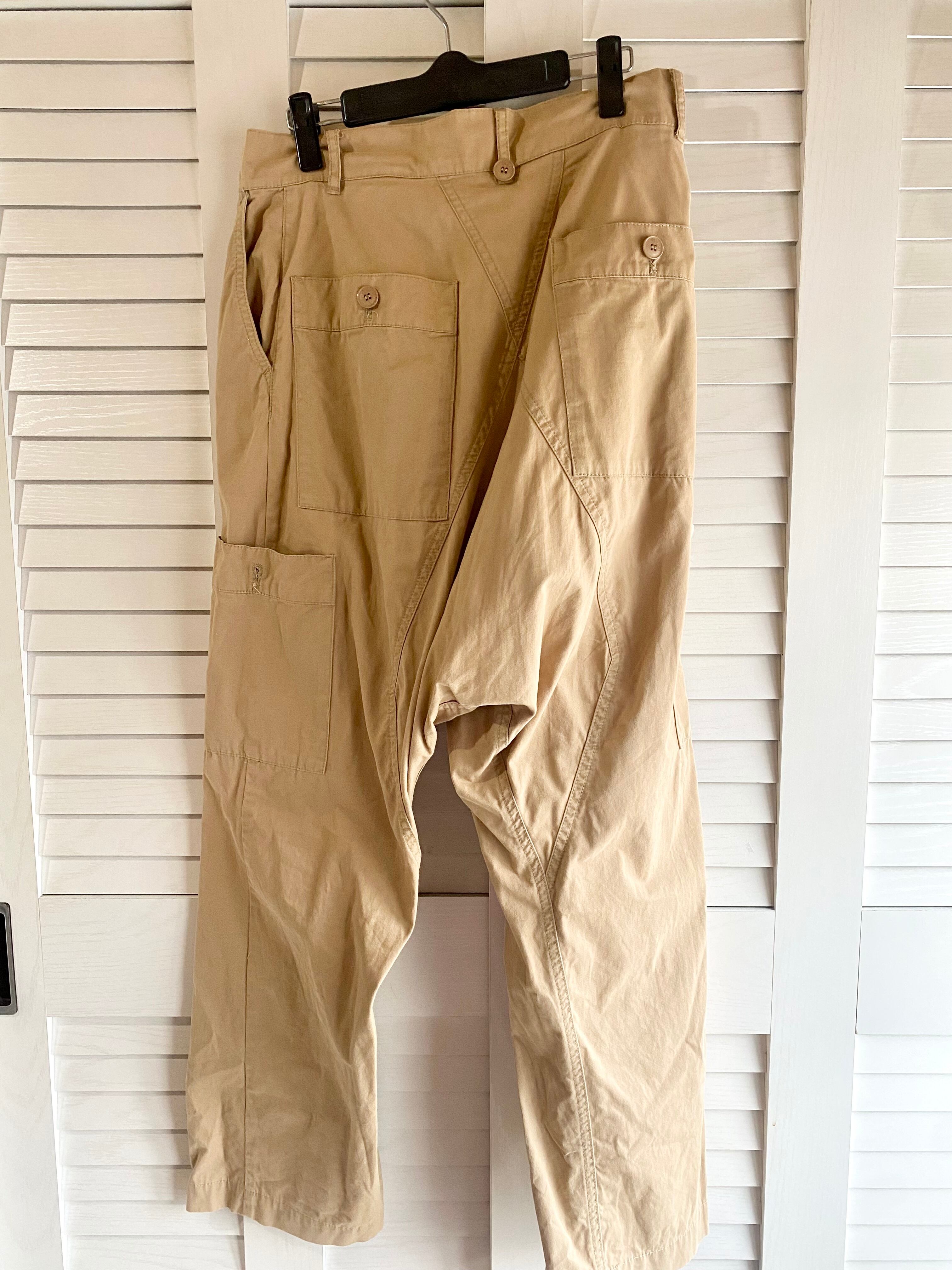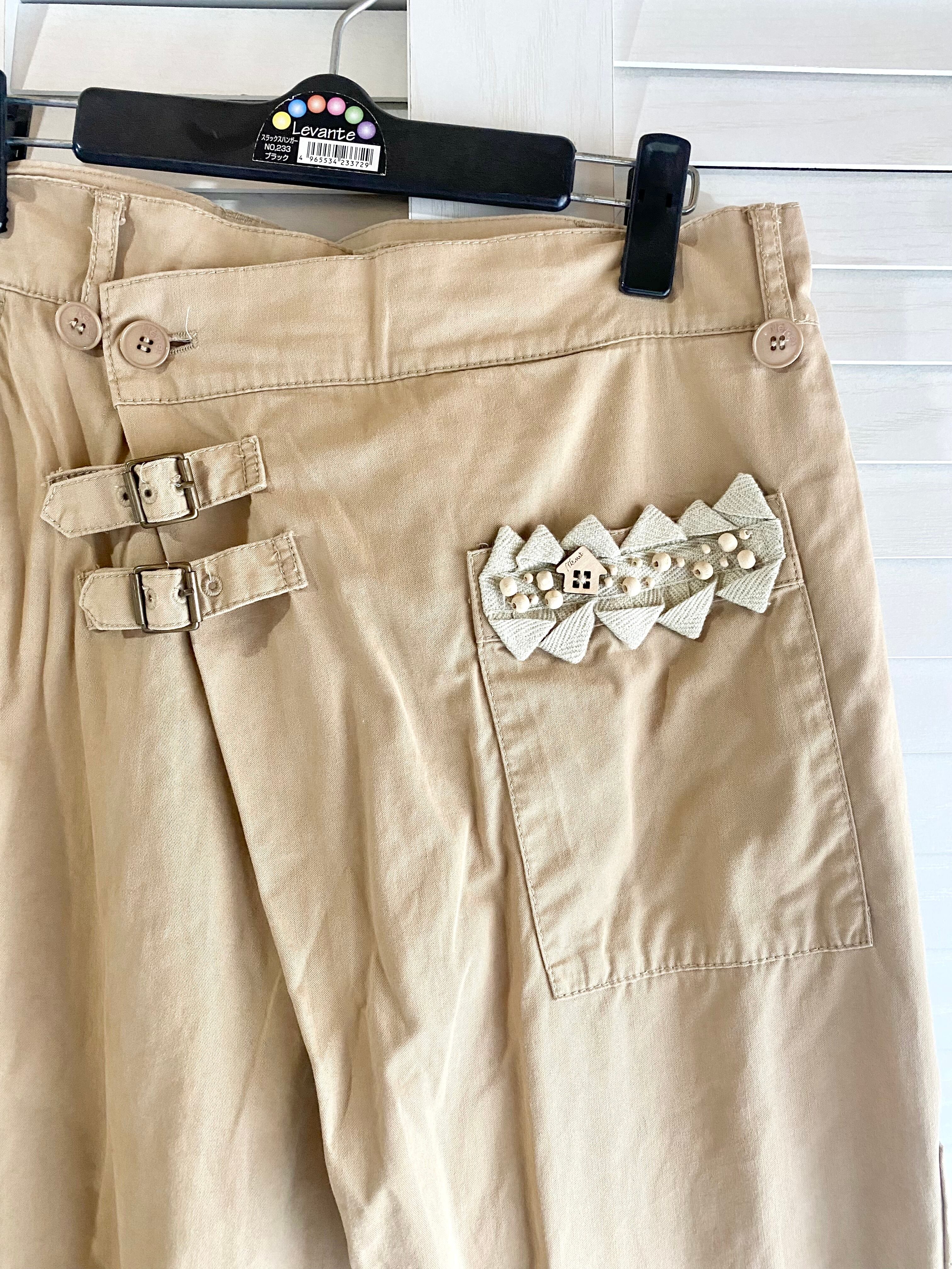 #221 Ne-net ラップ風デザイン チノクロス変形サルエルパンツ カーキページュ