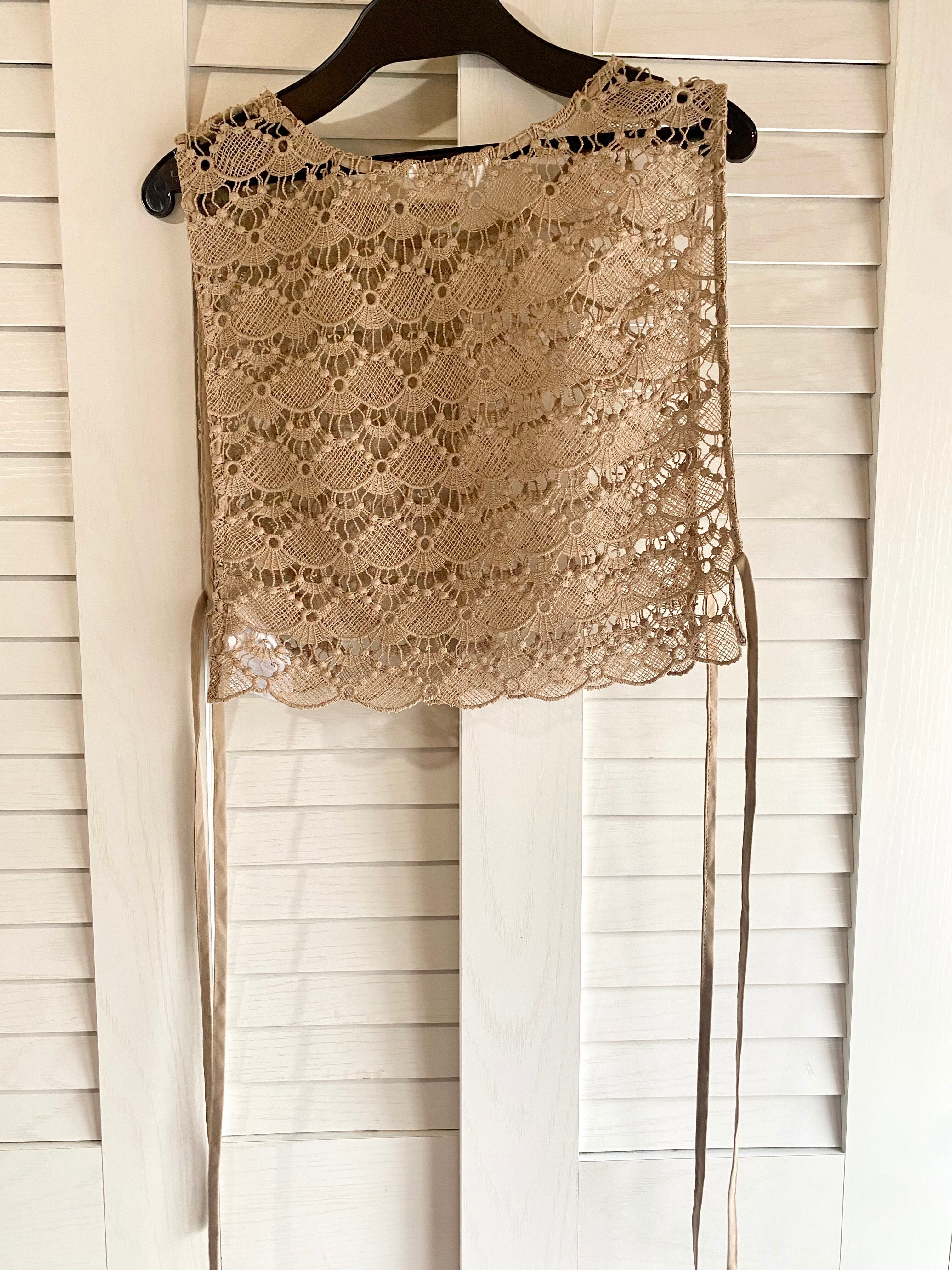 #221 ehka sopo シャンデリアレース サイドリボンジレ モカベージュ | お洋服屋さん 『GOKKO』