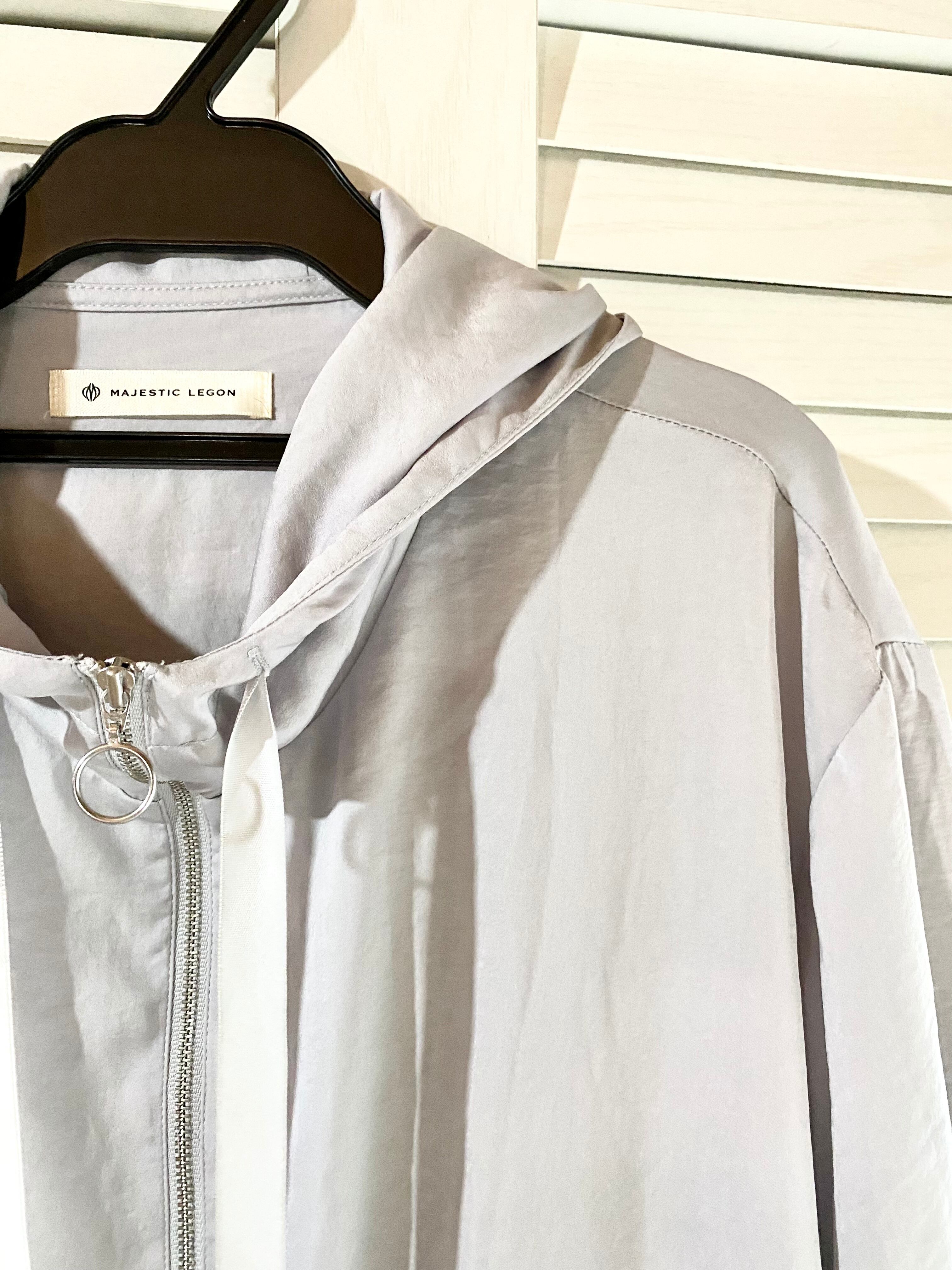 #222 MAJESTIC LEGON ヴィンテージサテン 半袖フーディーカーデ アイスグレー