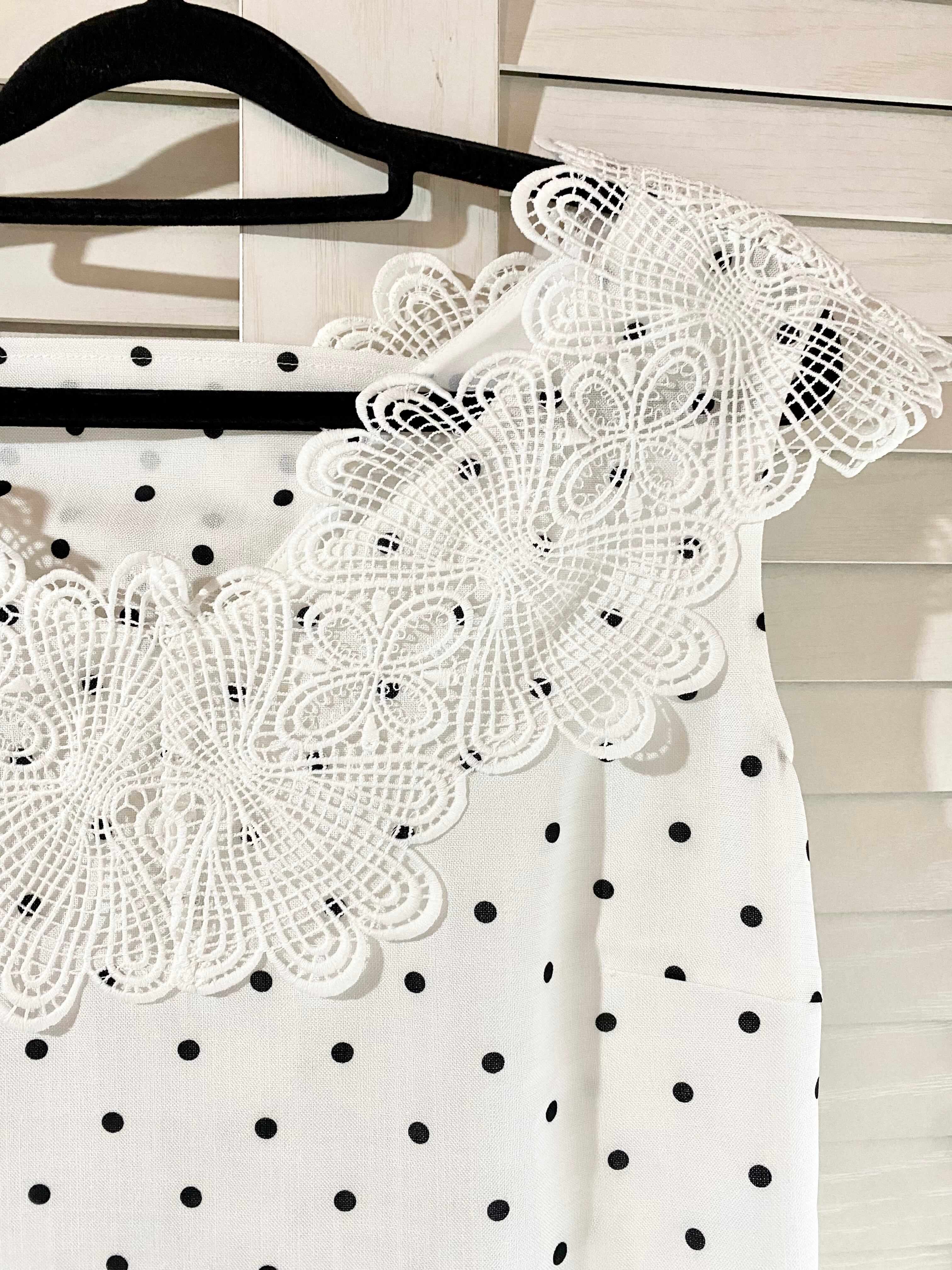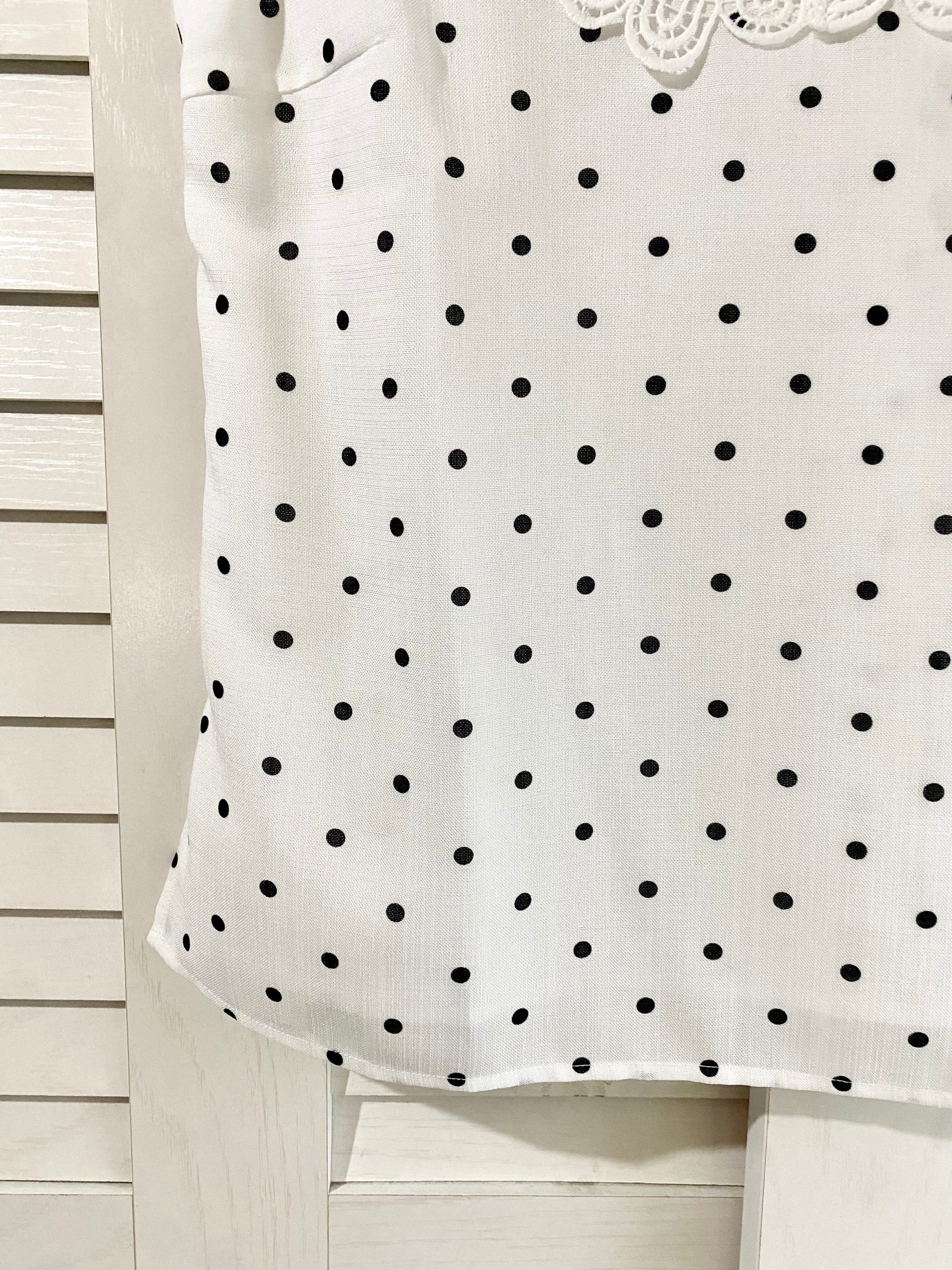 #222 Mystradaケミカルレースカラーヨーク ドットノースリーブブラウス オフホワイト
