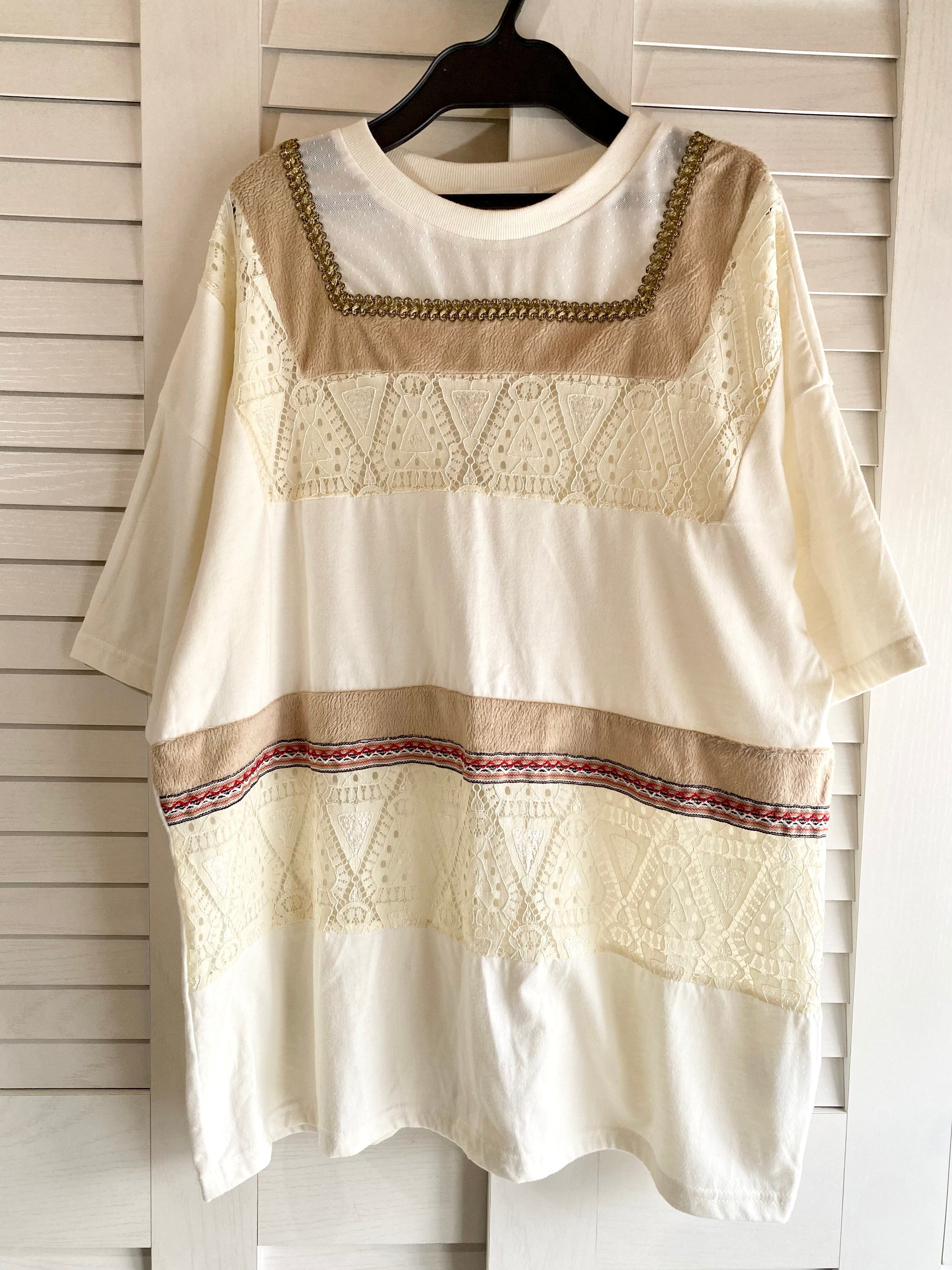 #226 rivet & surge レース&テープ パッチワーク オーバーサイズカットソー ナチュラル