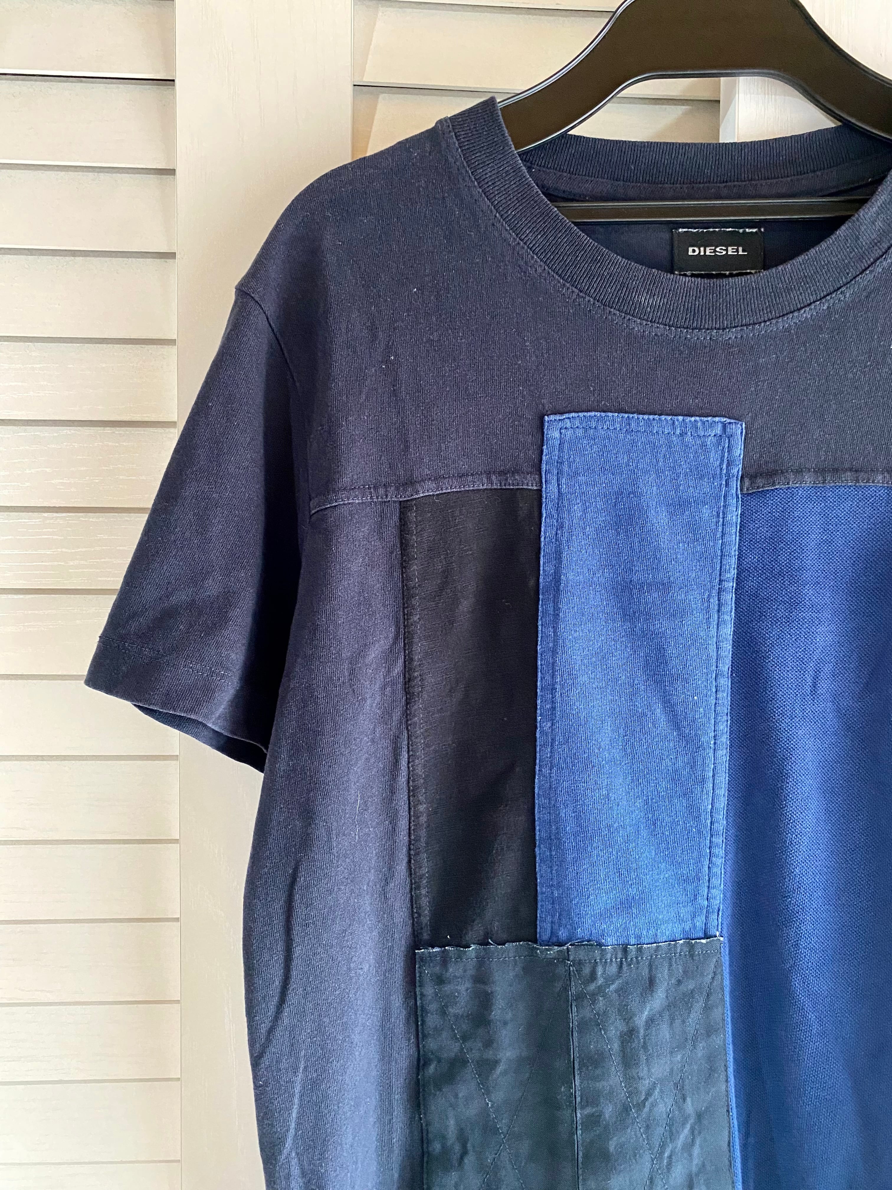 #227 DIESEL 一点物!インディゴ染めヴィンテージパッチワークTシャツ インディゴ