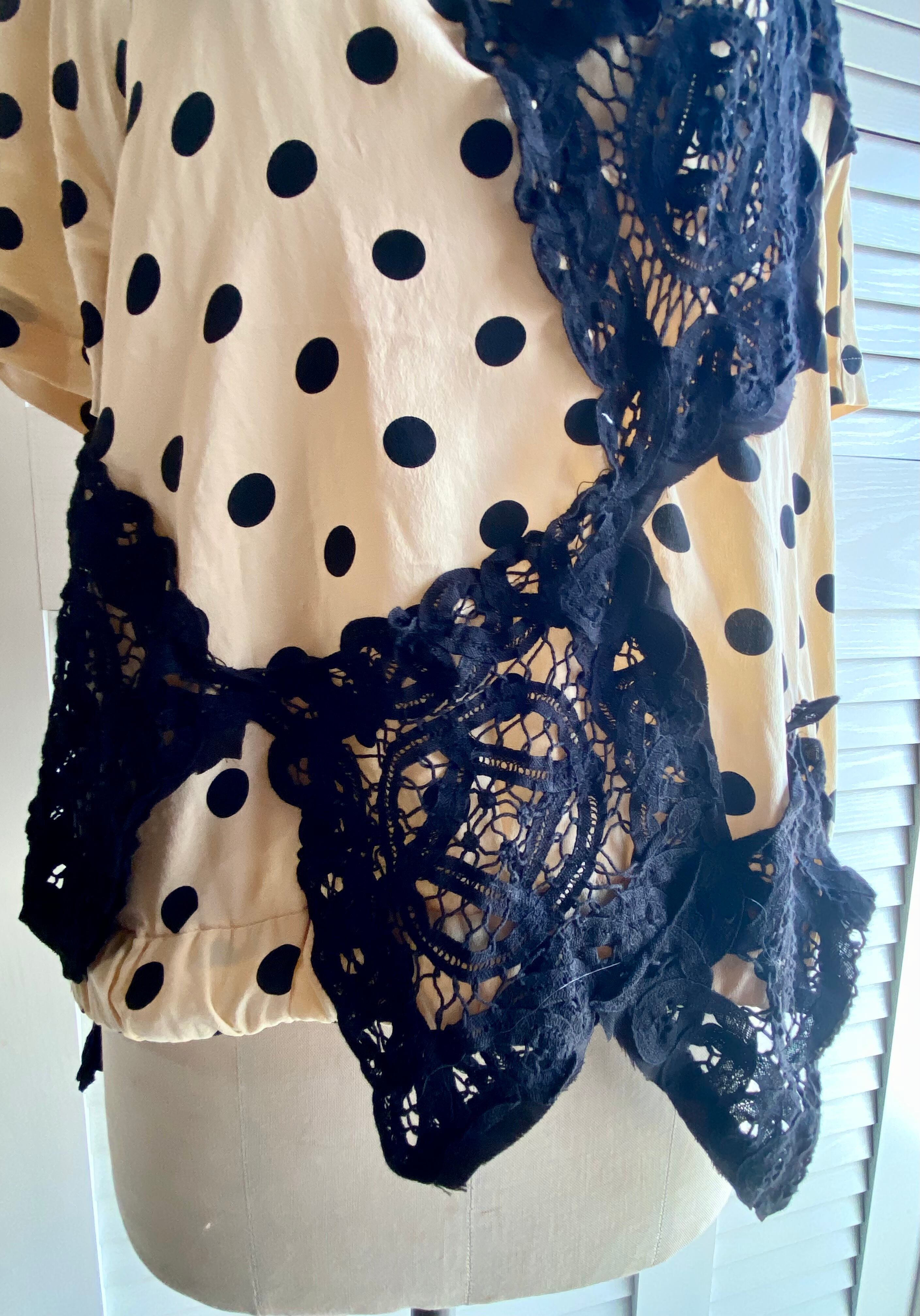 専用◎【リメイク一点物】ドット&バテレンレースブラウス クリーム×ブラック
