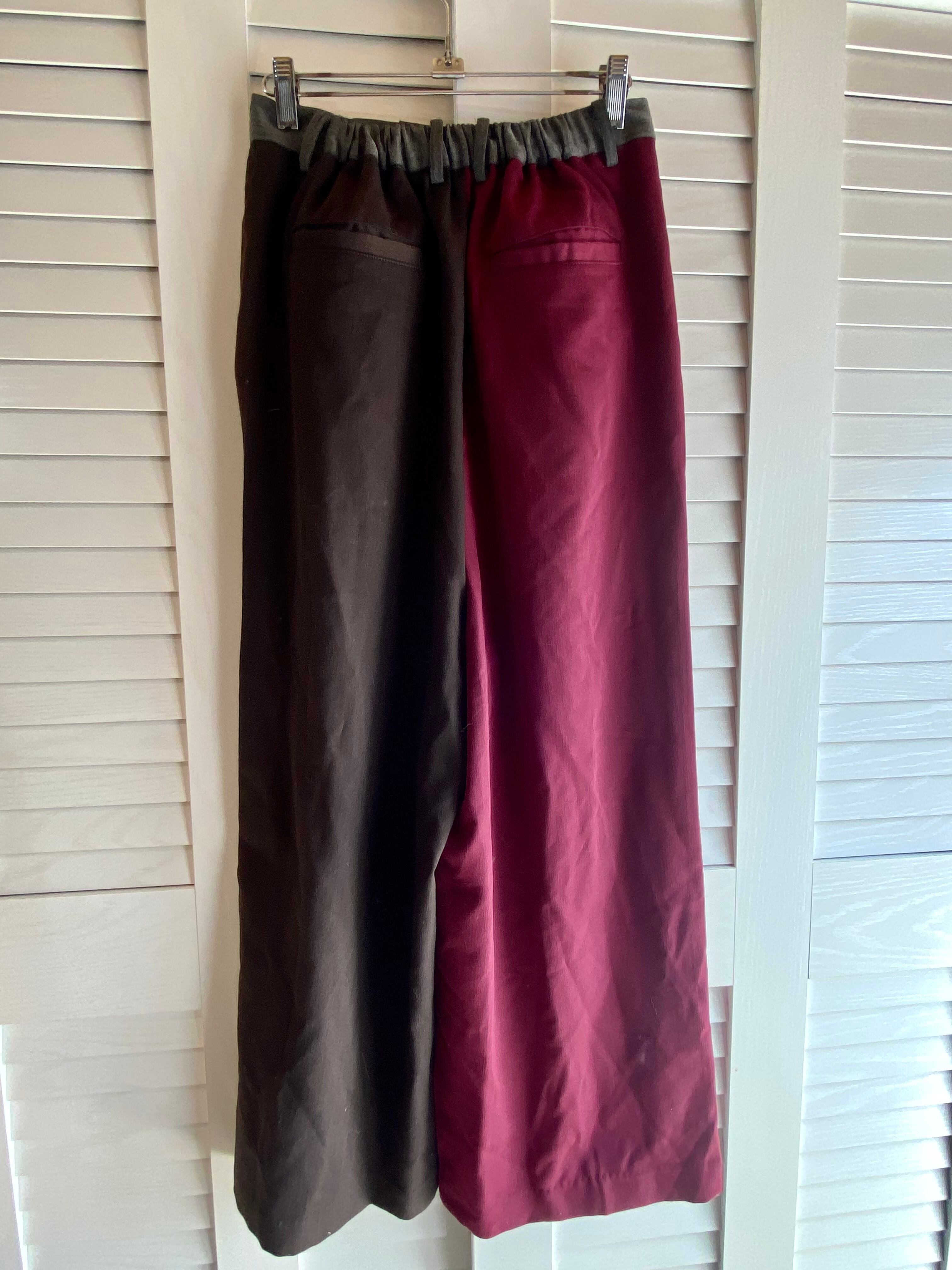 ★melrot バイカラー2タックワイドテーパードパンツ ダークブラウン×エンジ