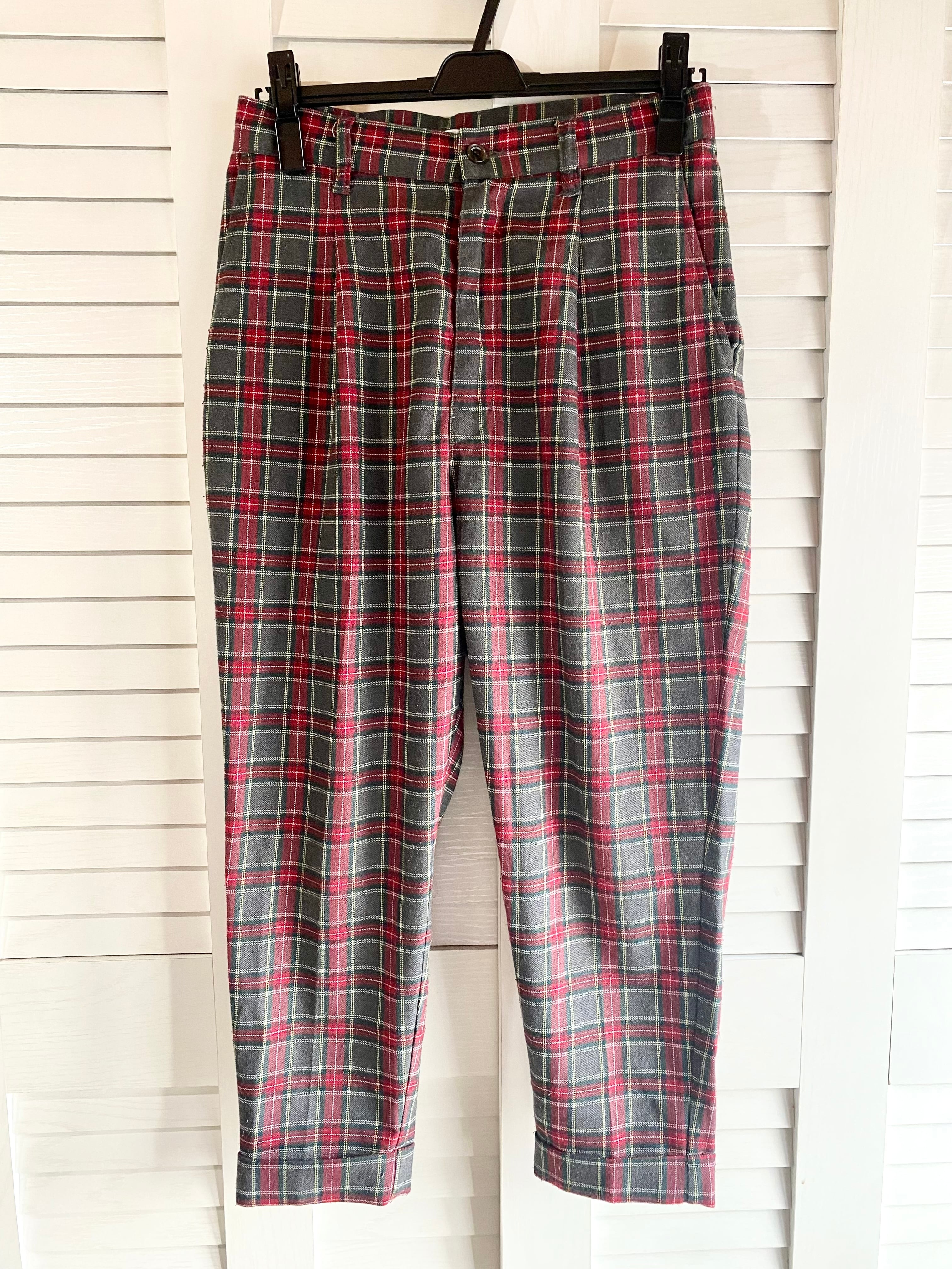 ❤︎Ne-net フクロウポケット タータンチェック ワンタックテーパードパンツ ダブル グレー