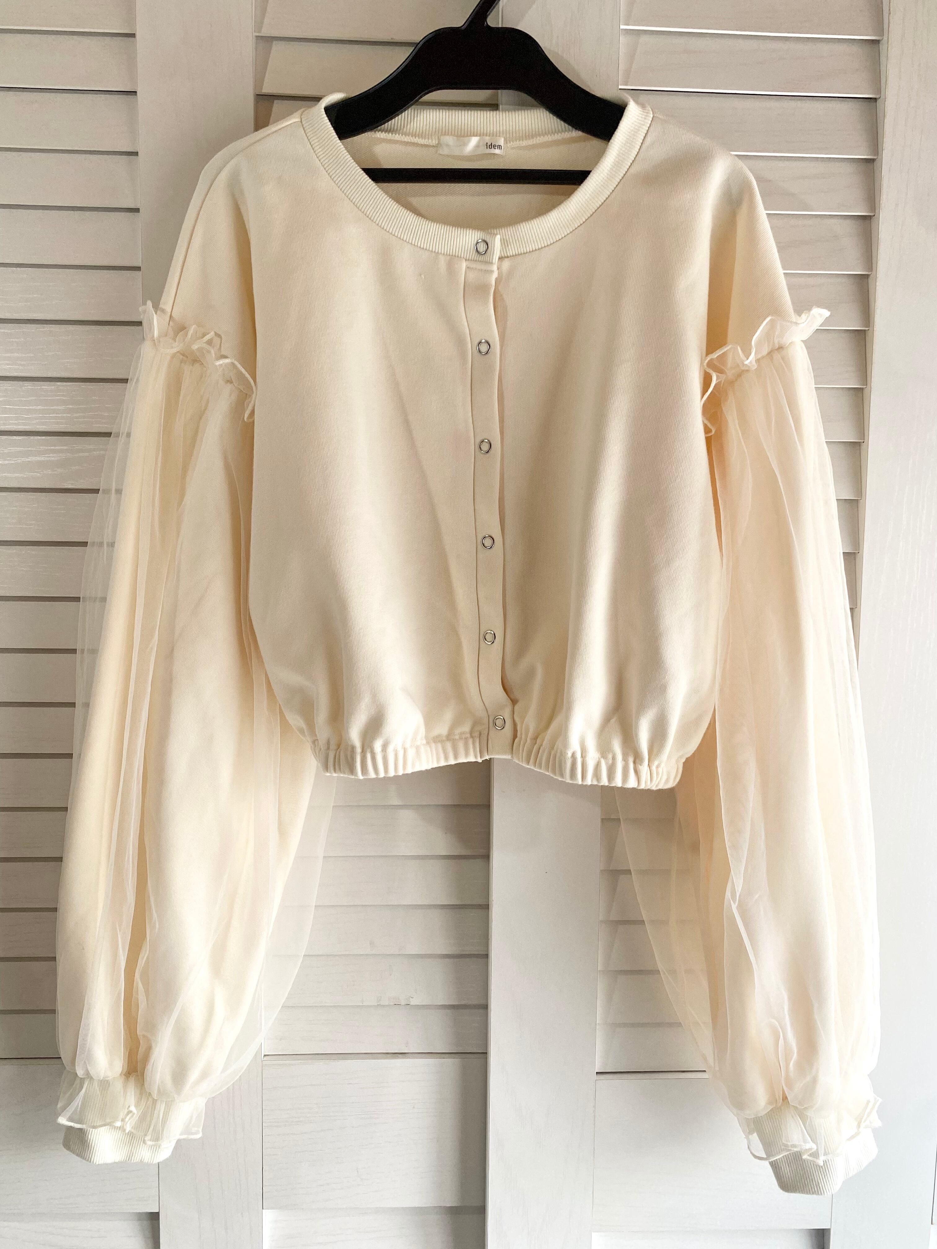 ❤︎idem オーバーチュールスリーブ ショート丈カットソーカーデ アイボリー