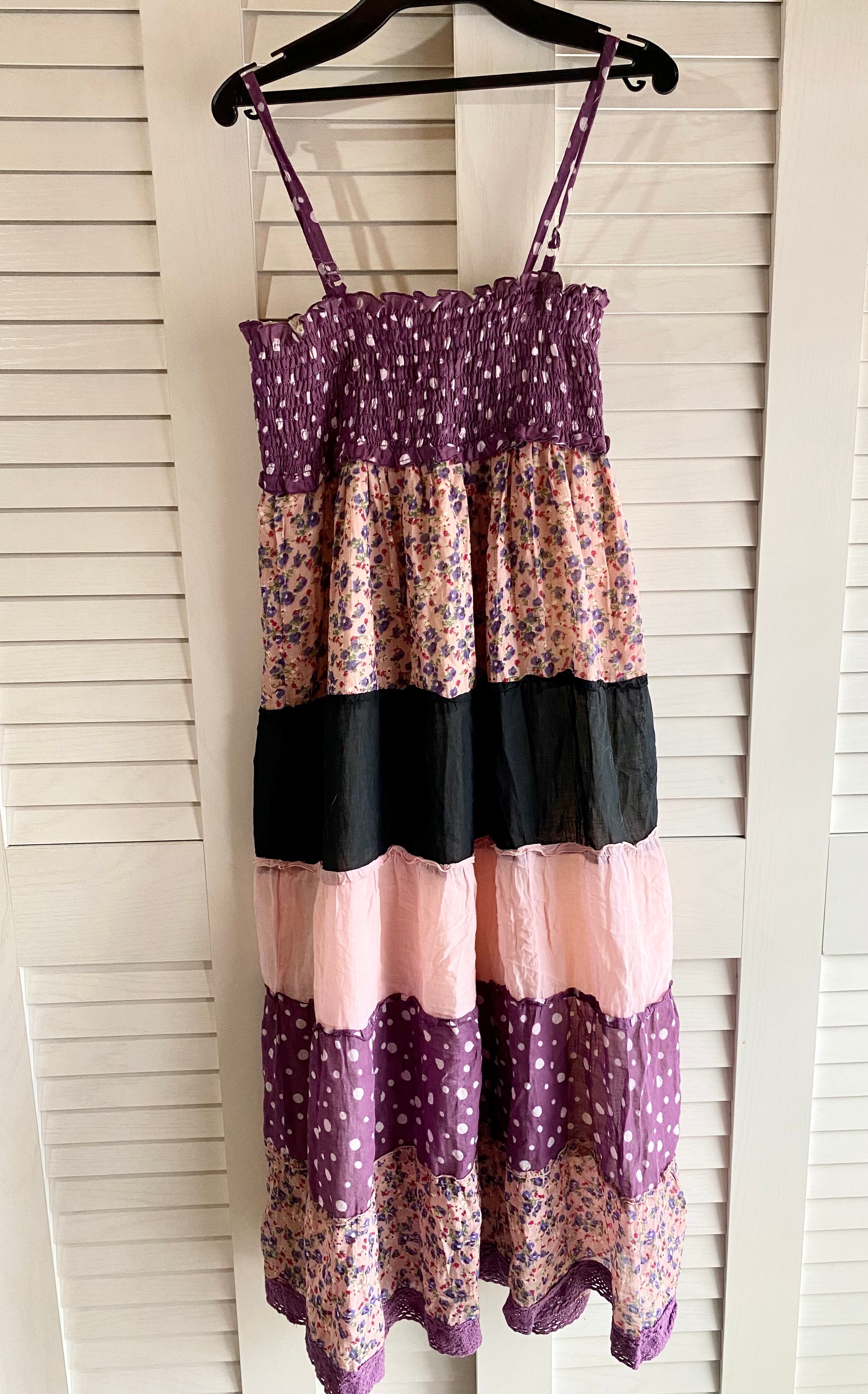#230 Jumble 2WAYパターン切替パッチワークティアードワンピ パープル