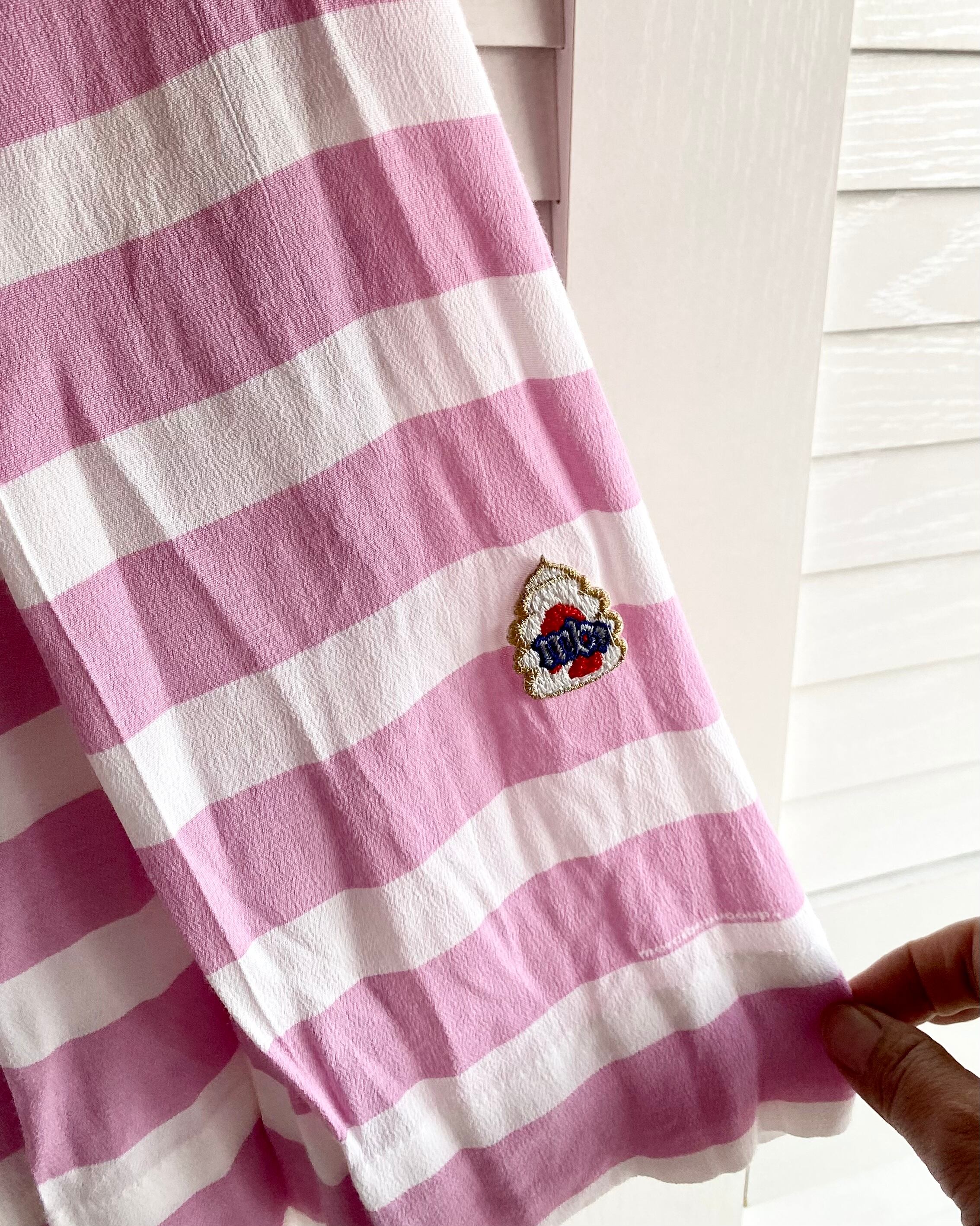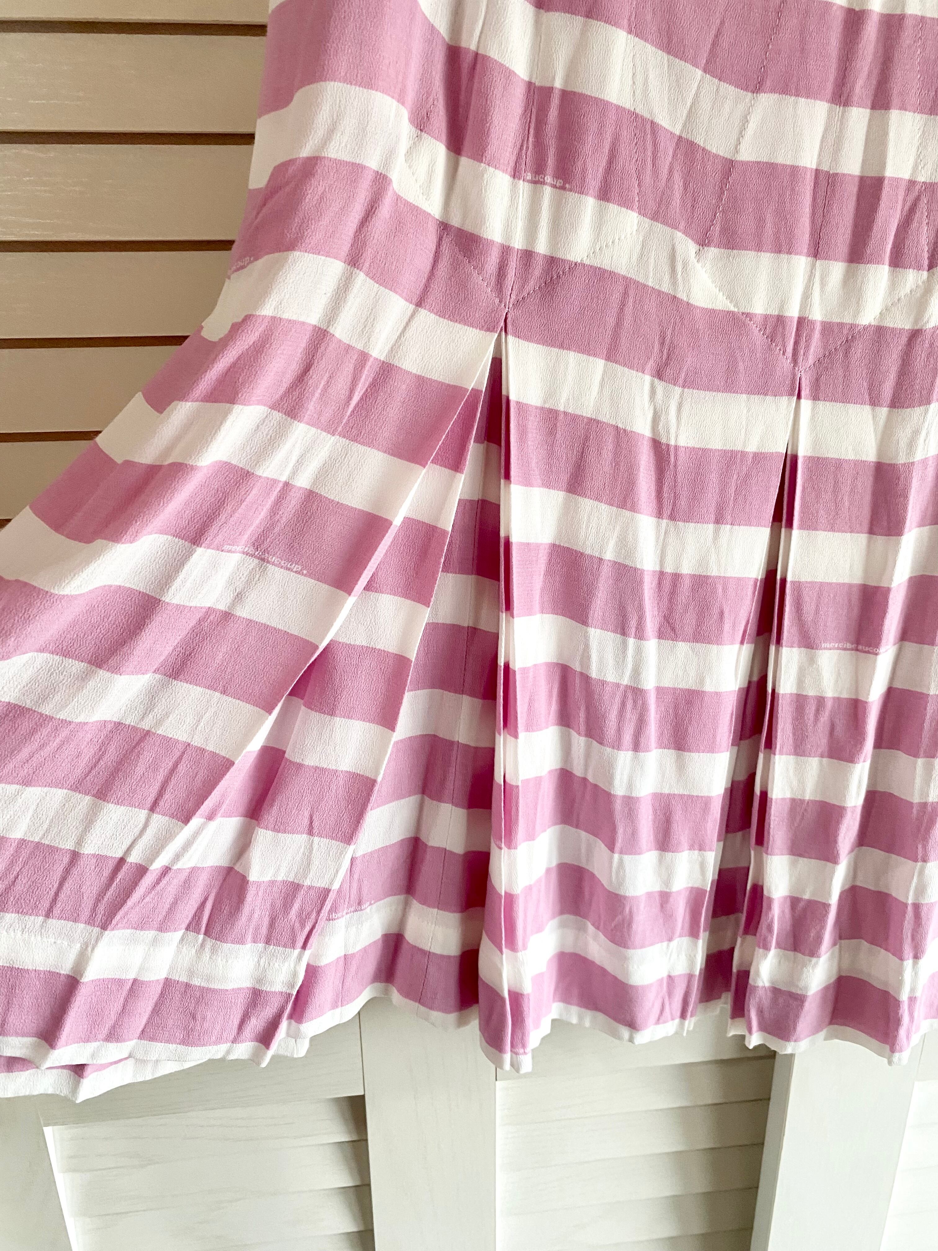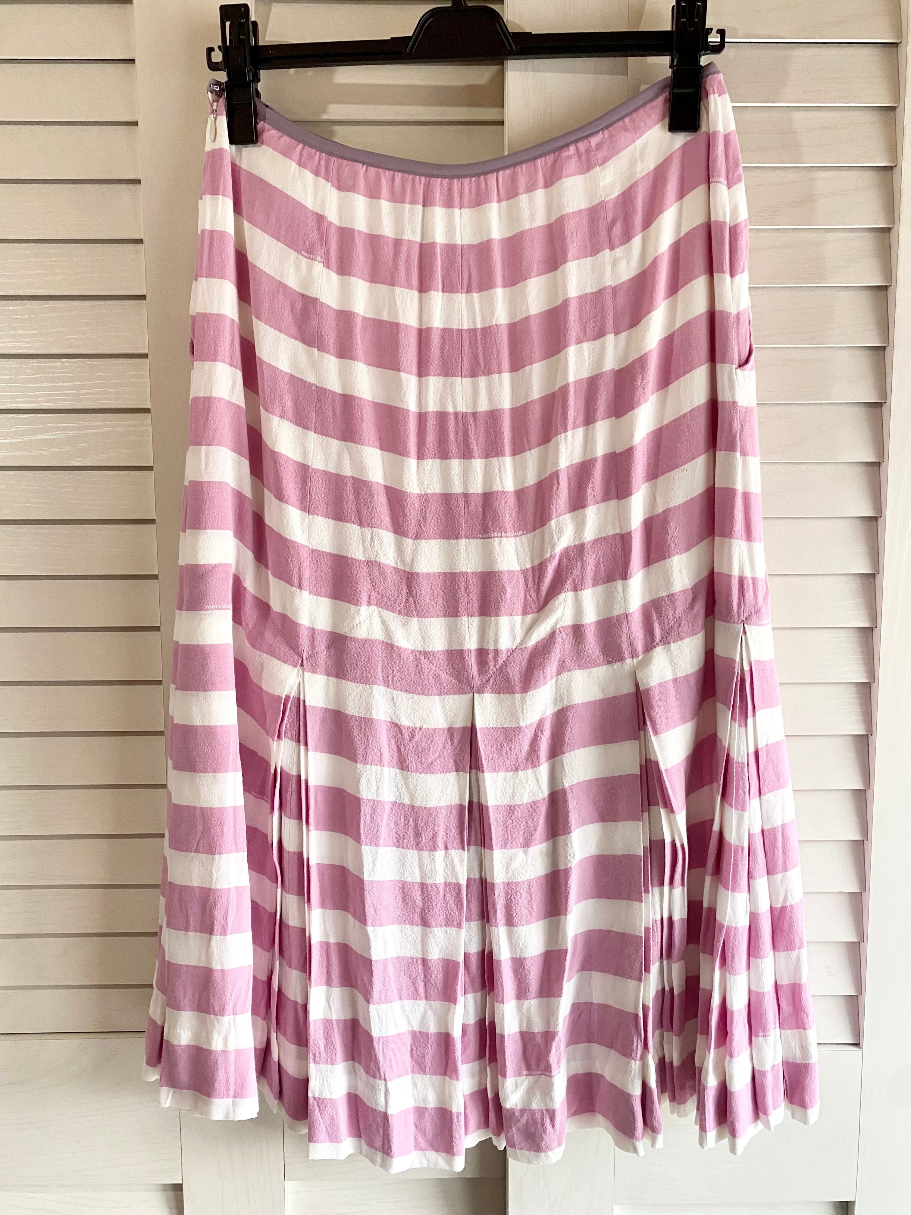 #230 mercibeaucoup, オリジナルボーダー柄ストレッチ梨地ジョーゼットトリプルプリーツ スカート ピンクパープル