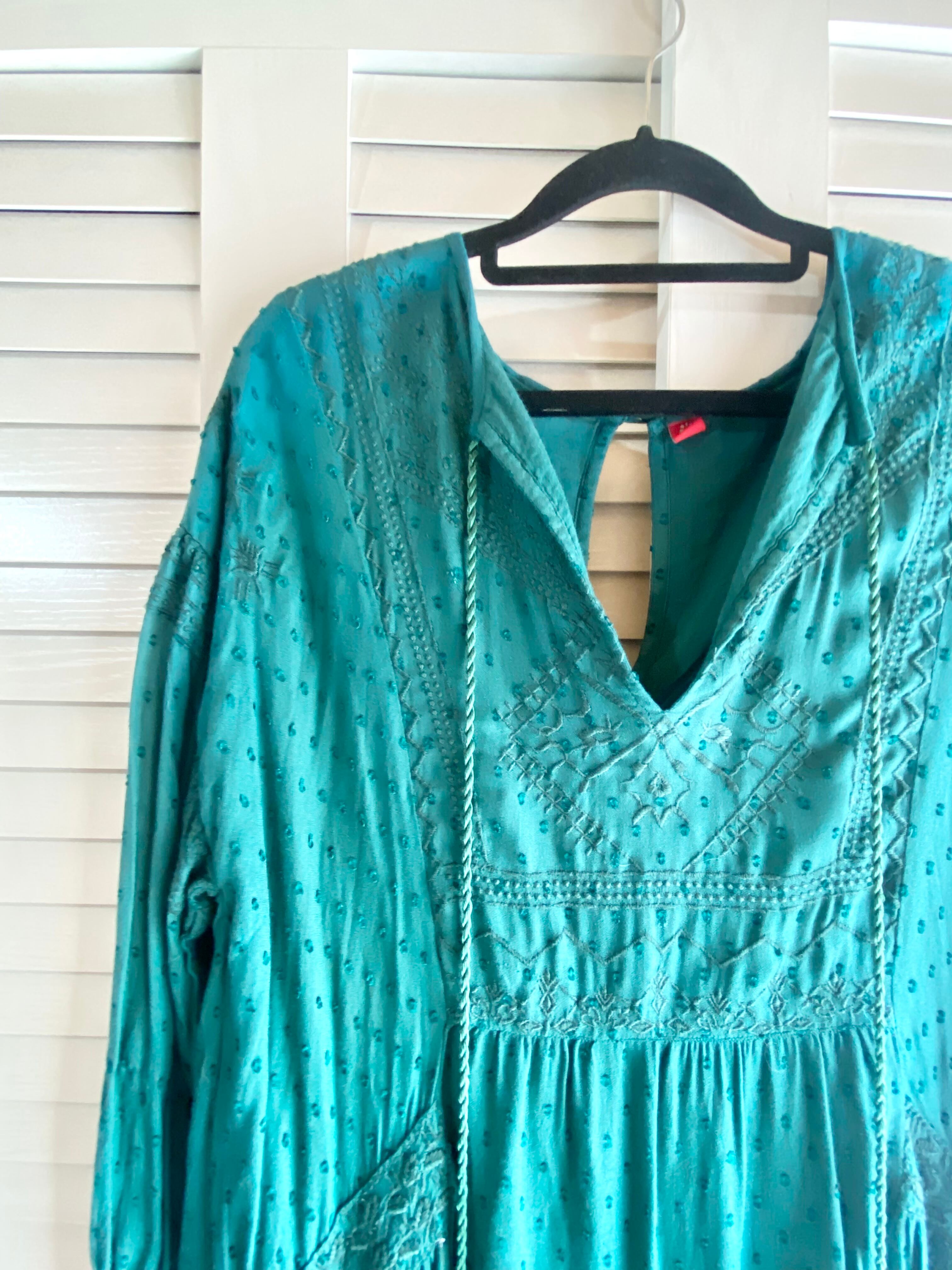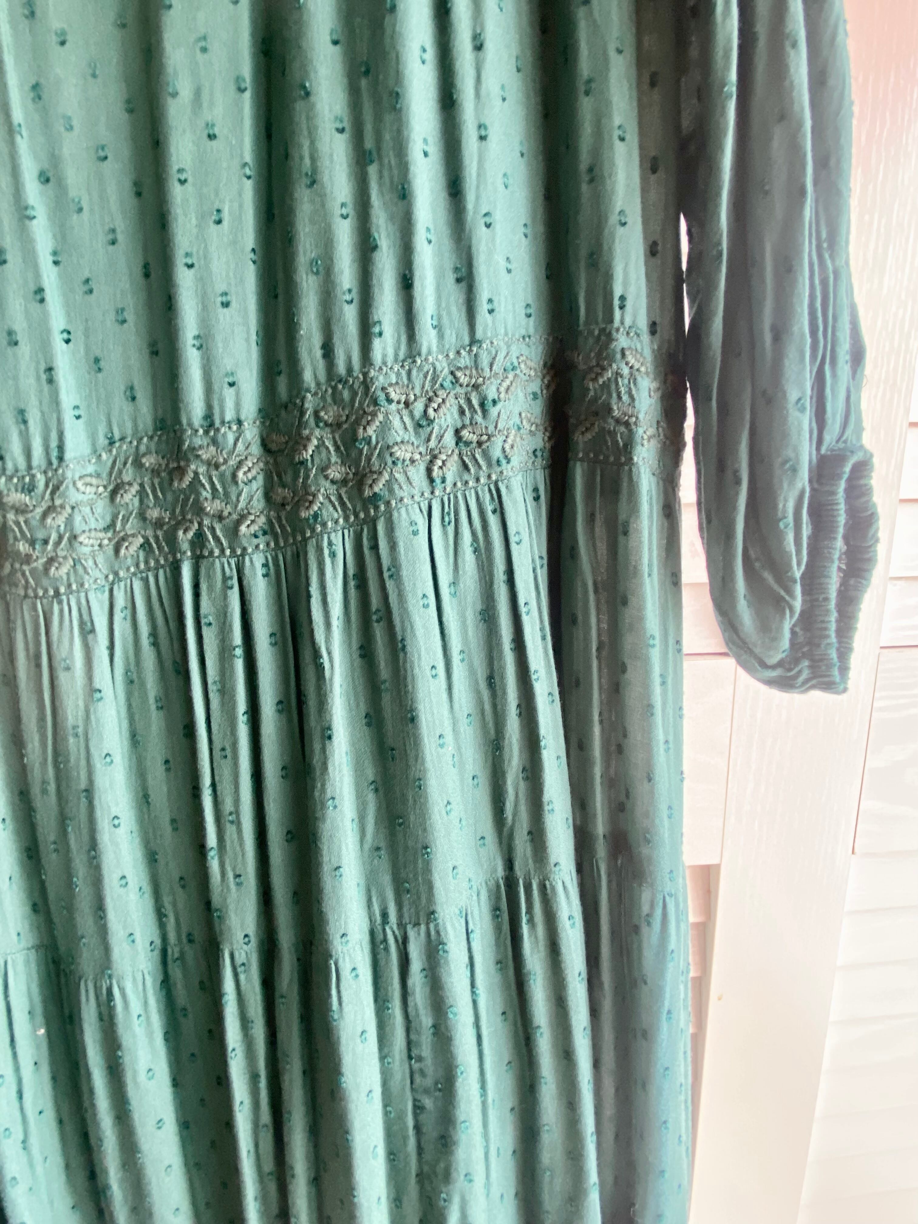 ❤︎Amina 刺繍レーヨン ドビードット オーバーサイズティアードワンピ ターコイズブルー