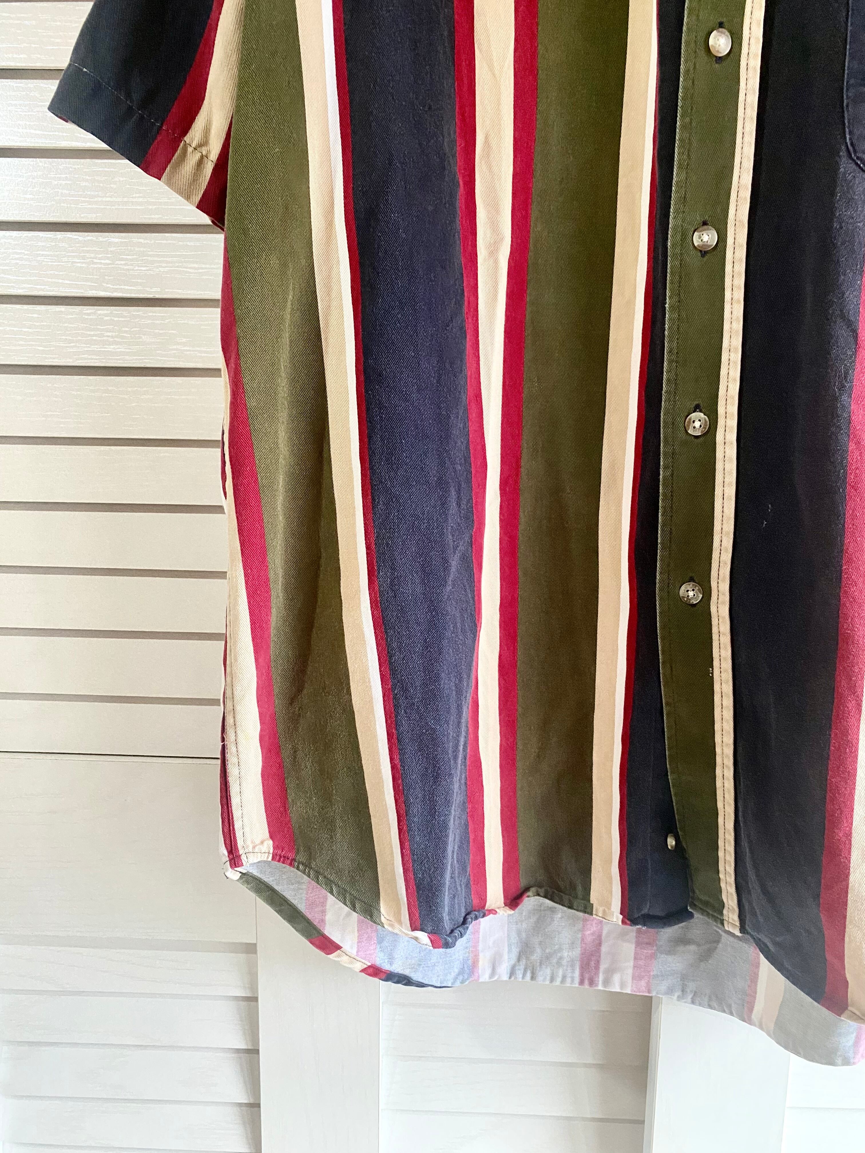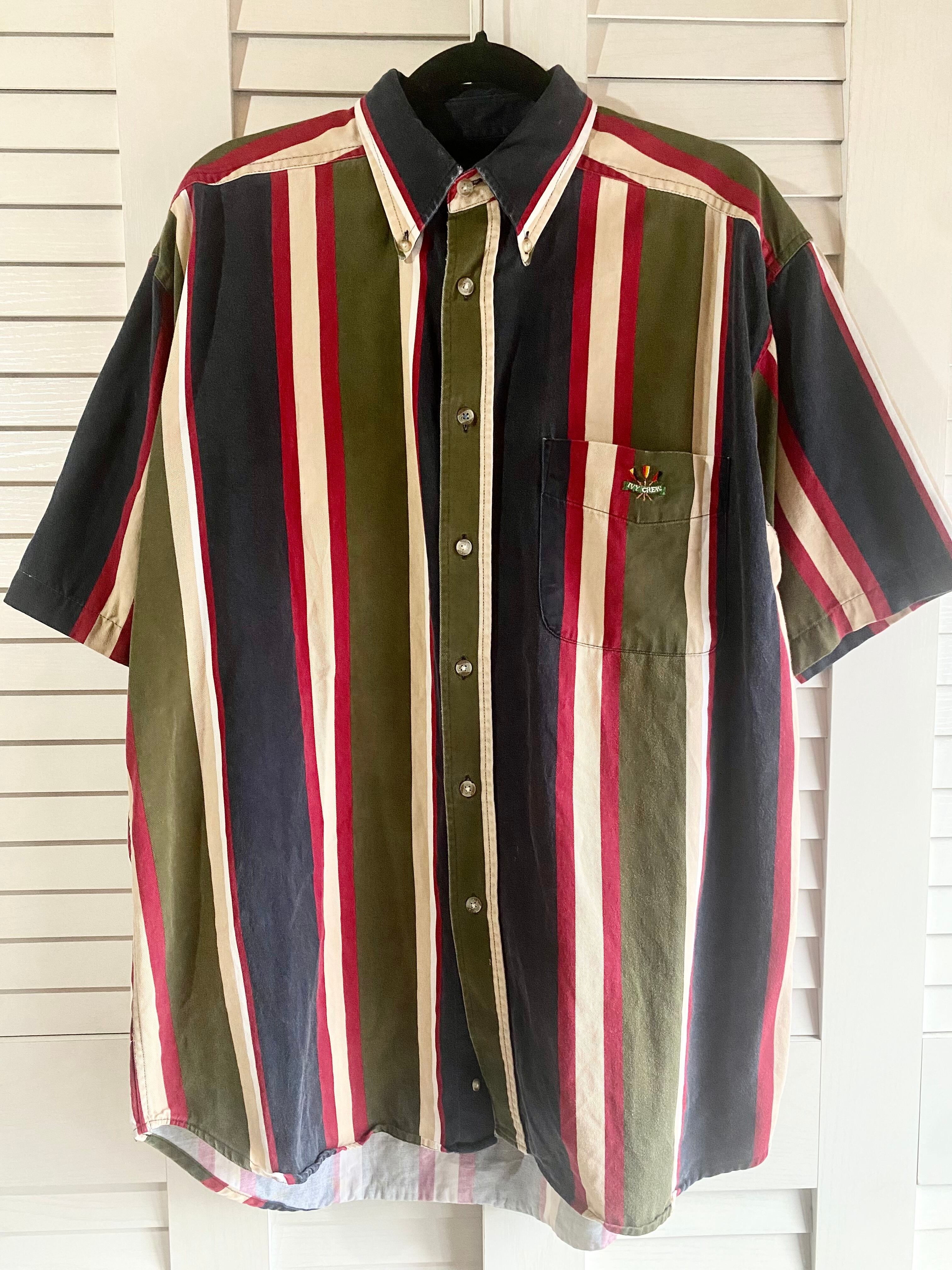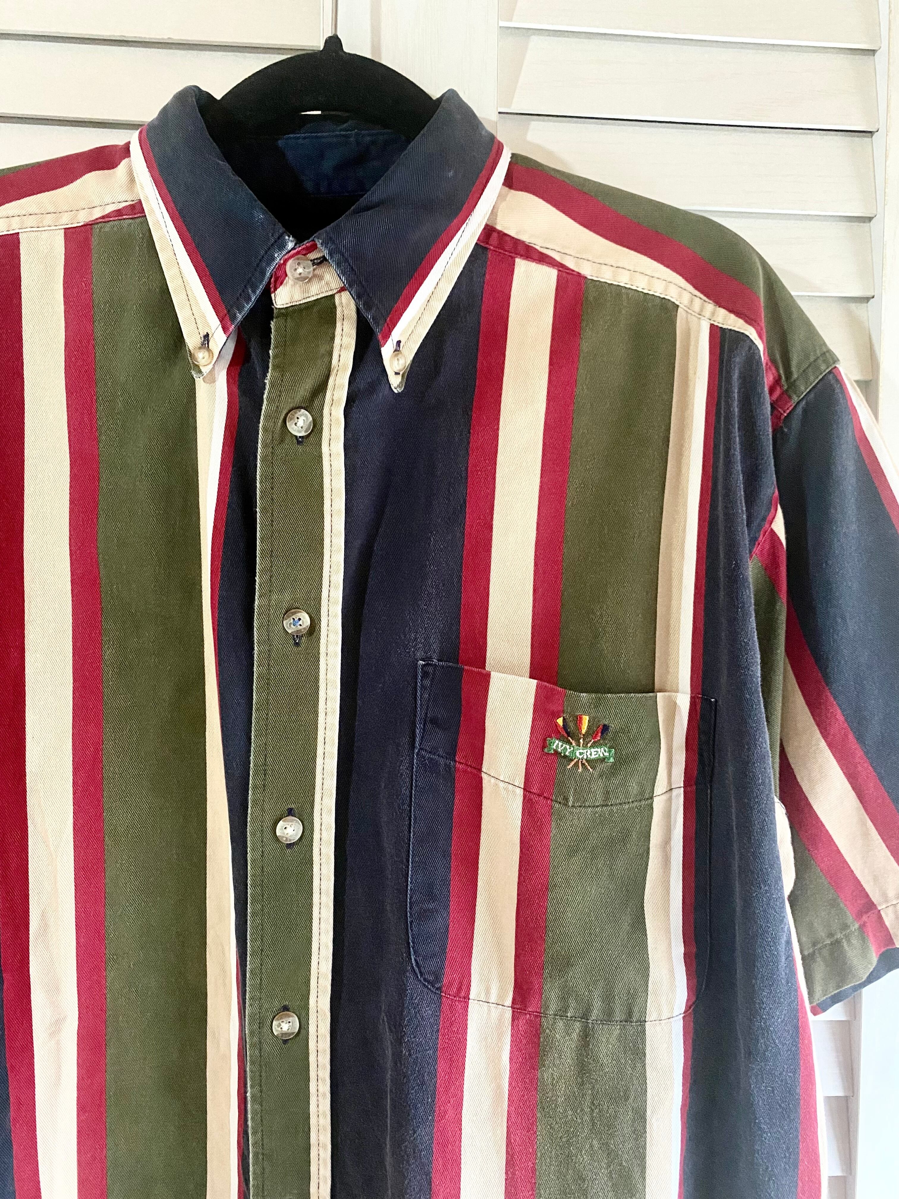 #232【古着屋購入】IVY CREW 90sヴィンテージ レジメンタルストライプボタンダウンシャツ カーキ