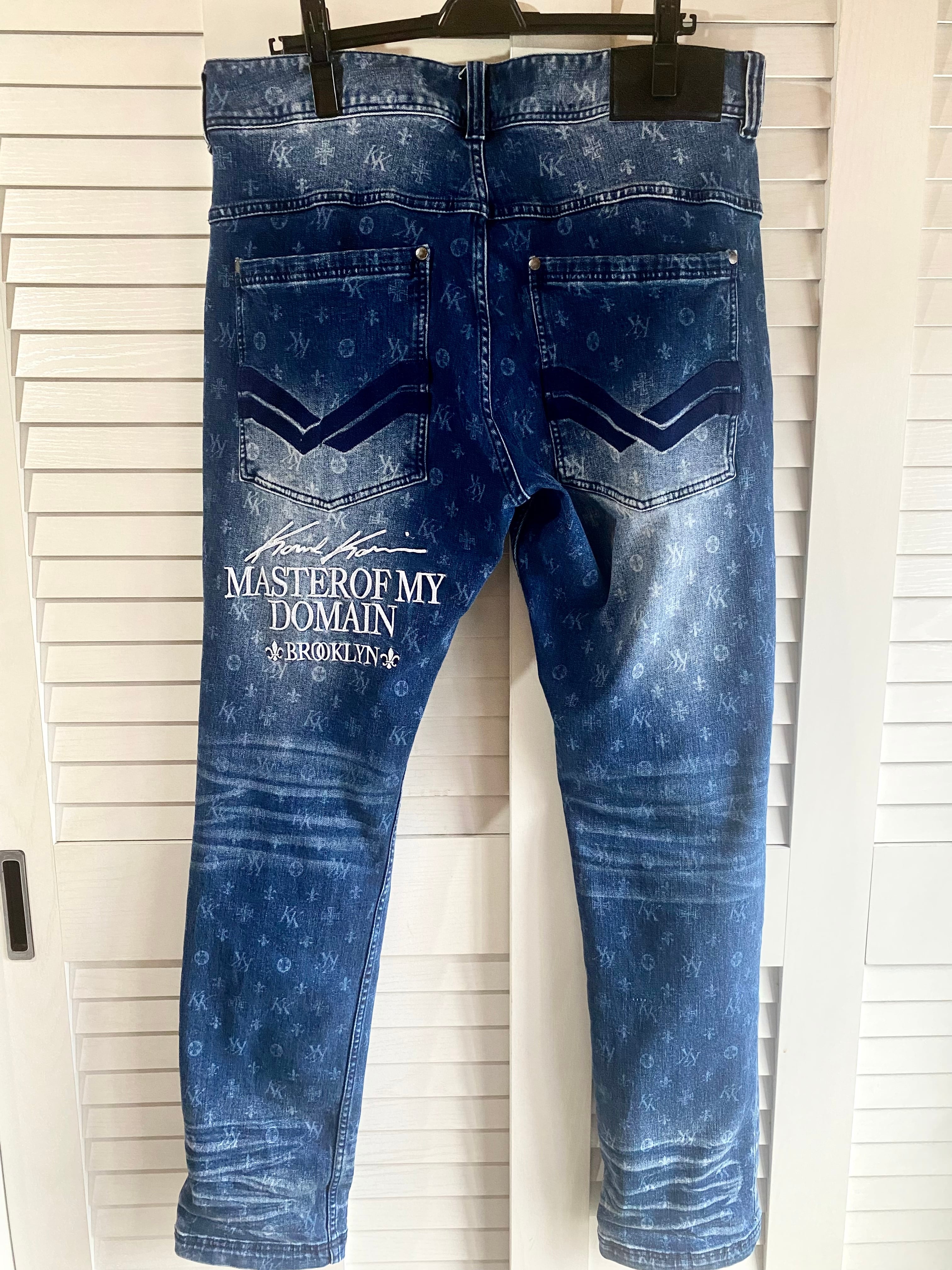 #232 Karl Kani モノグラム柄 ロゴ刺繍 スーパーストレッチジーンズ インディゴ