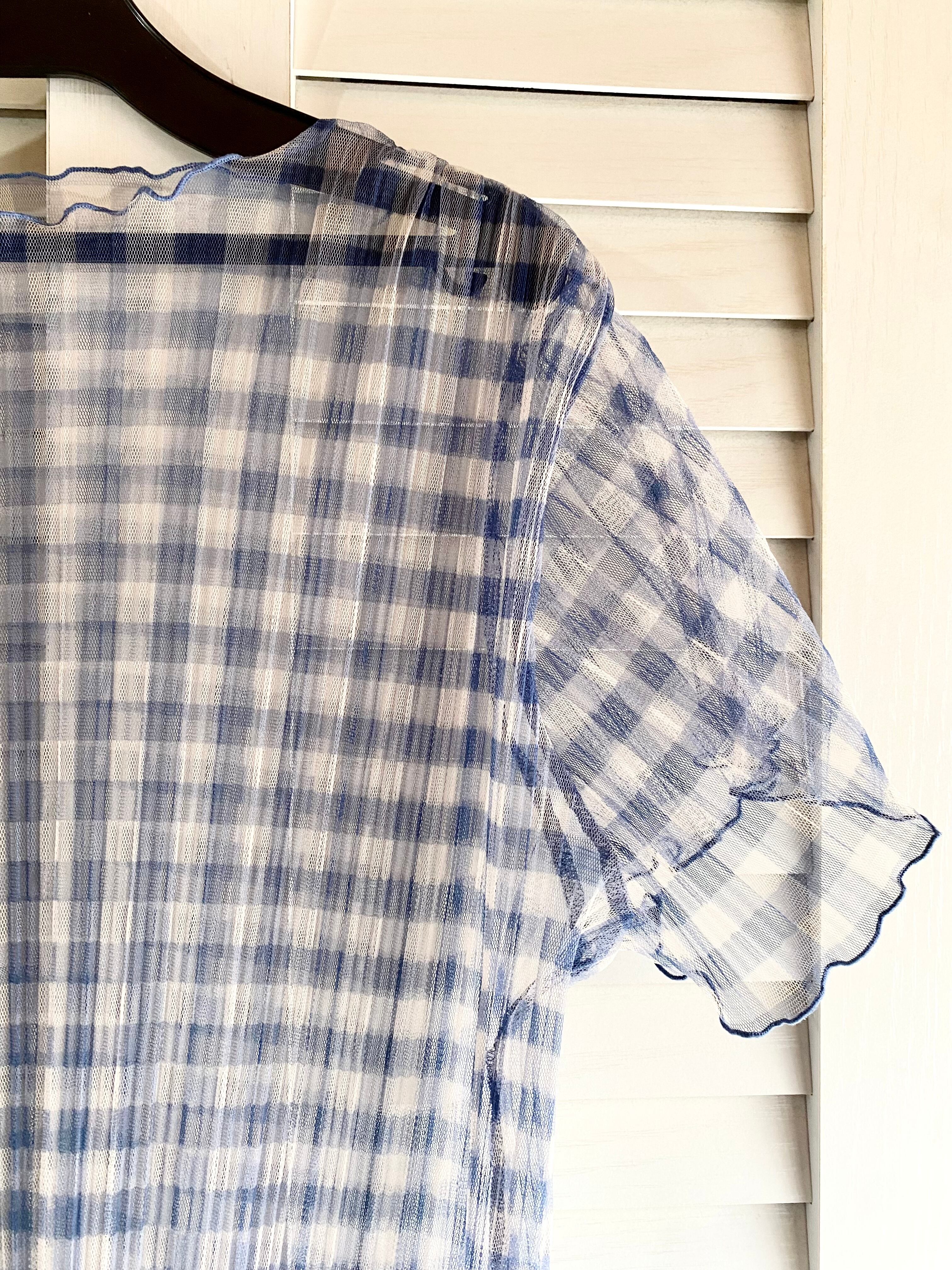 専用◎#234 2PINK ギンガムチェック クリンクルチュールプルオーバートップス ライトブルー