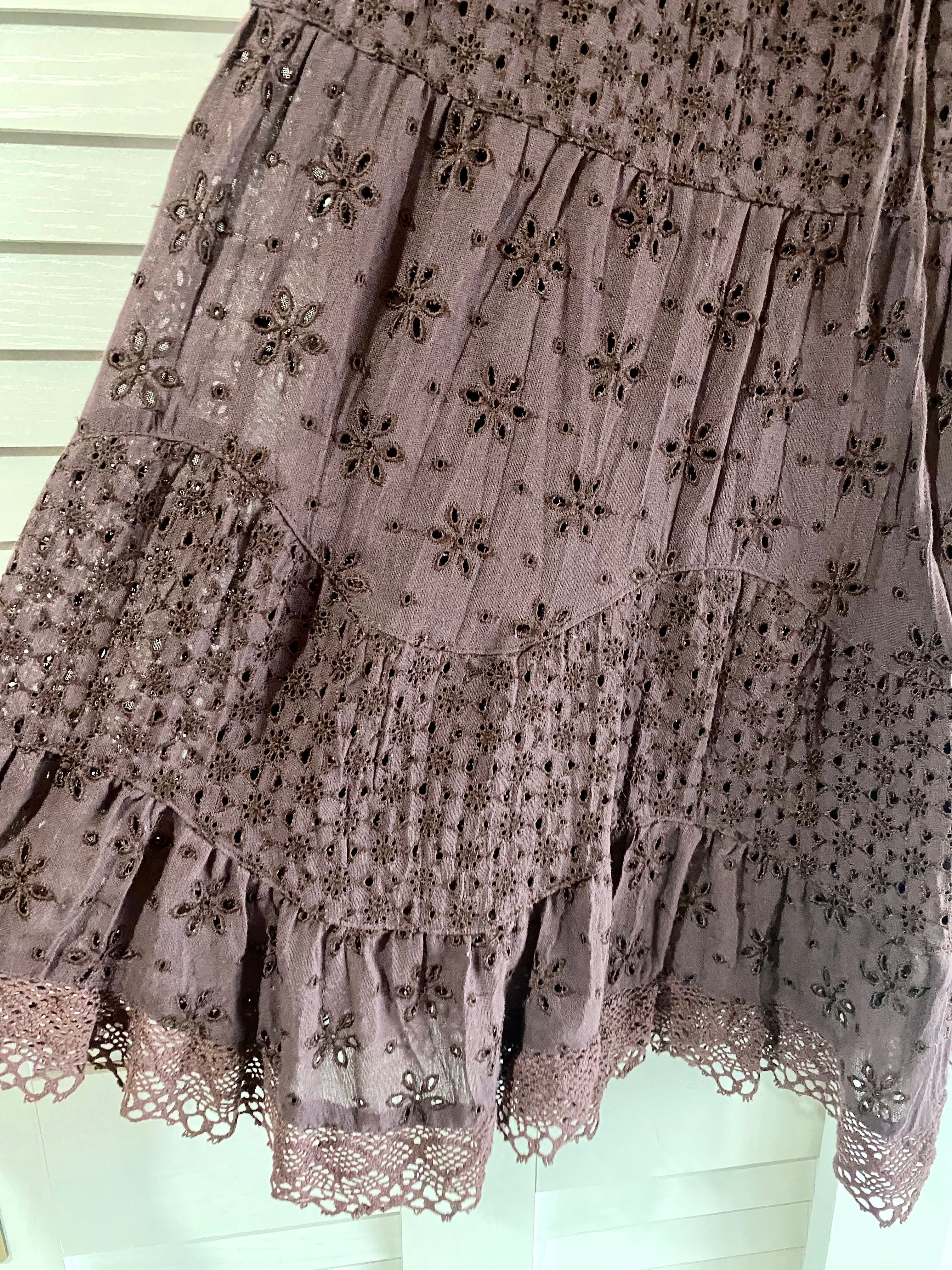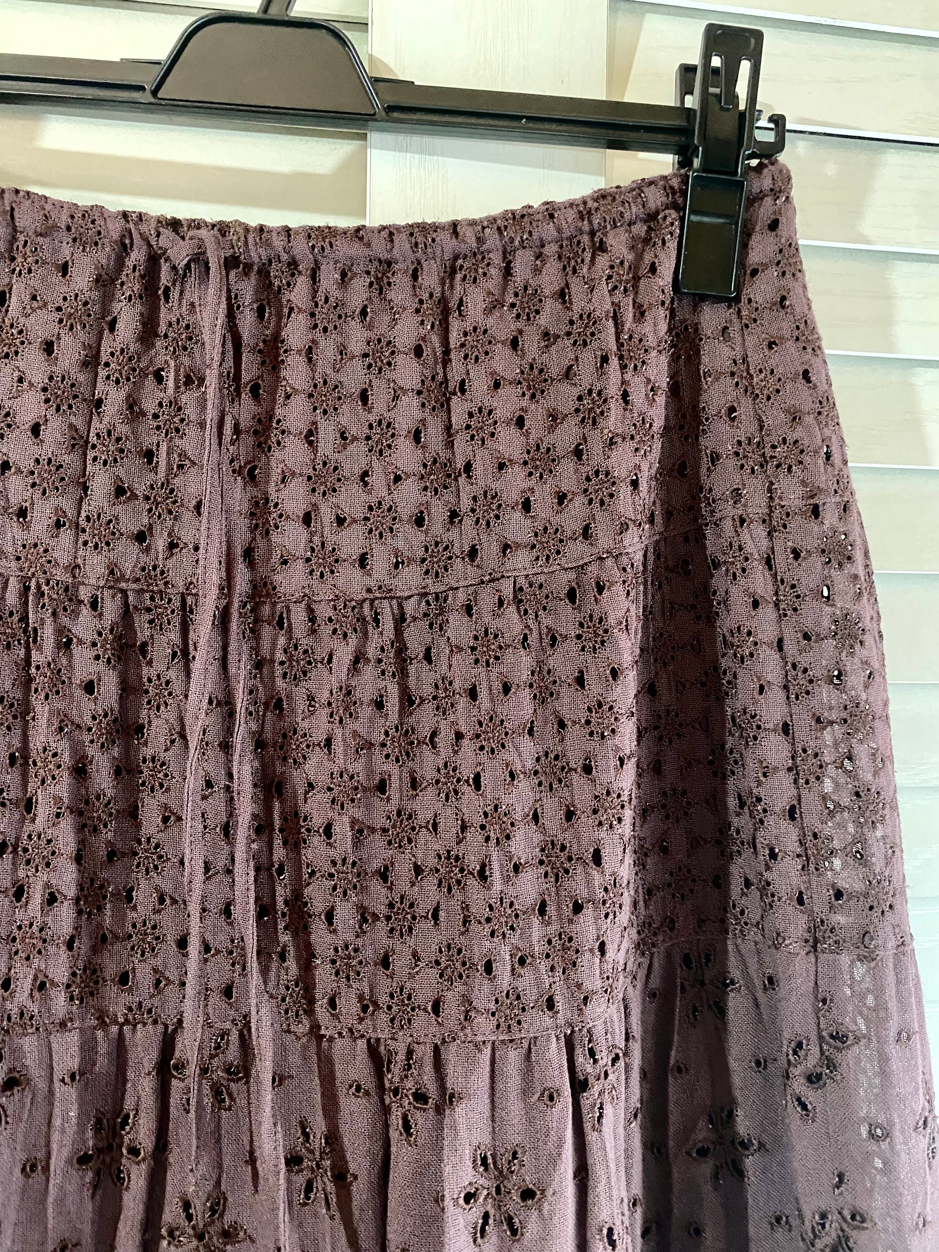#238 L'EST ROSE カッティングレース ジグザグティアード レーヨンウールスカート ブラウン