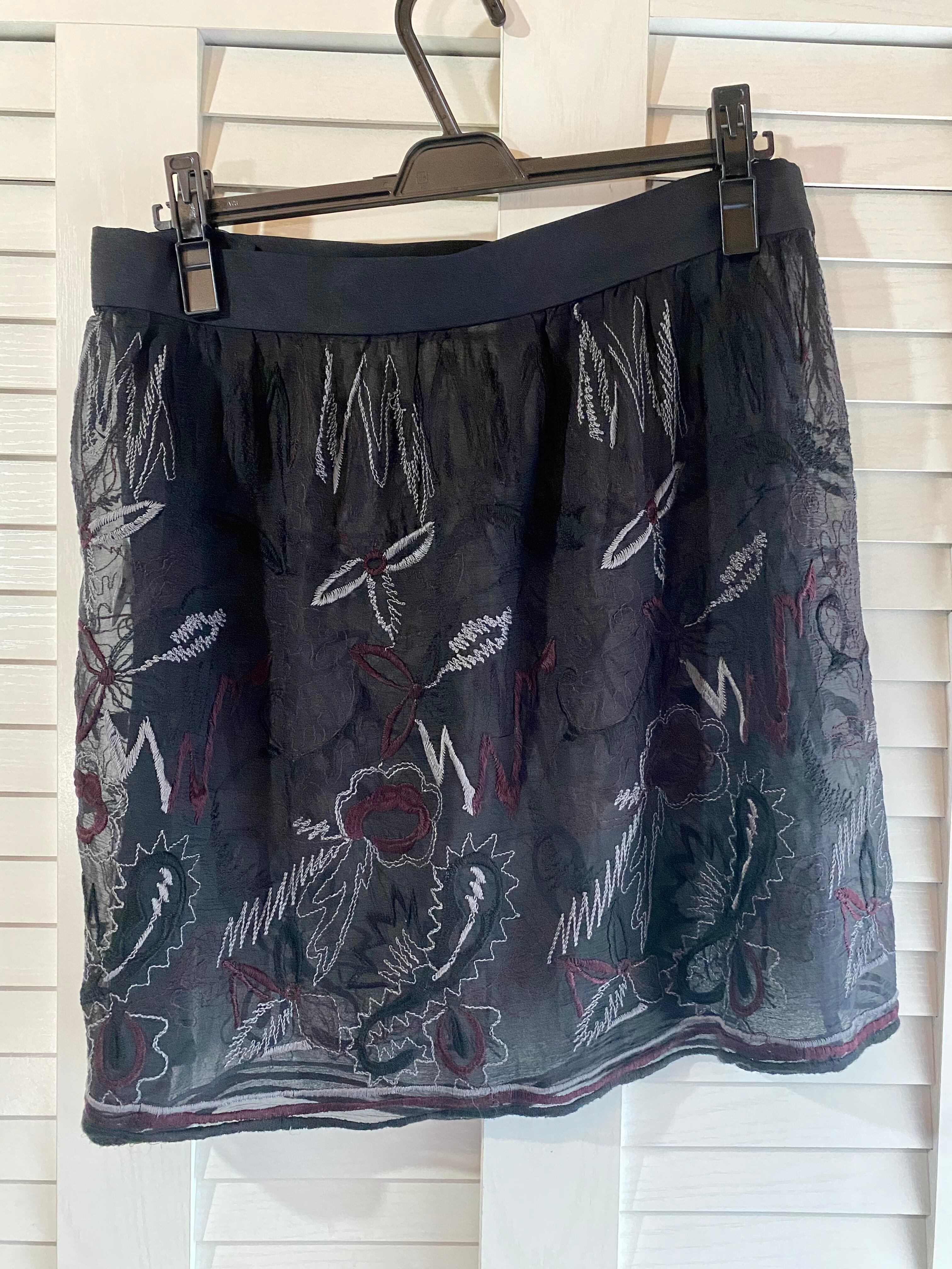 #238 KEI Hayama 刺繍楊柳シアーシルク ラップオーバースカート ブラック