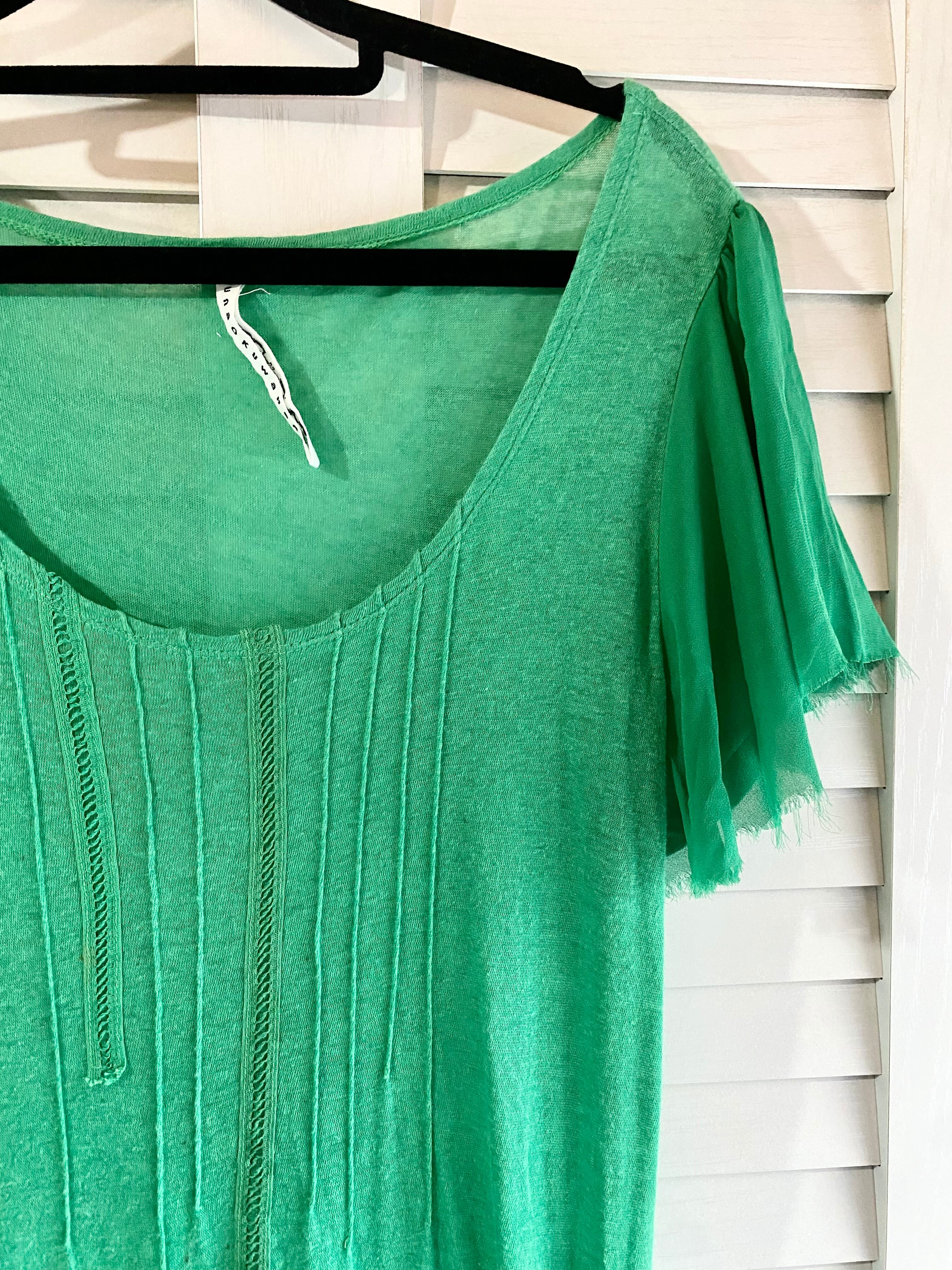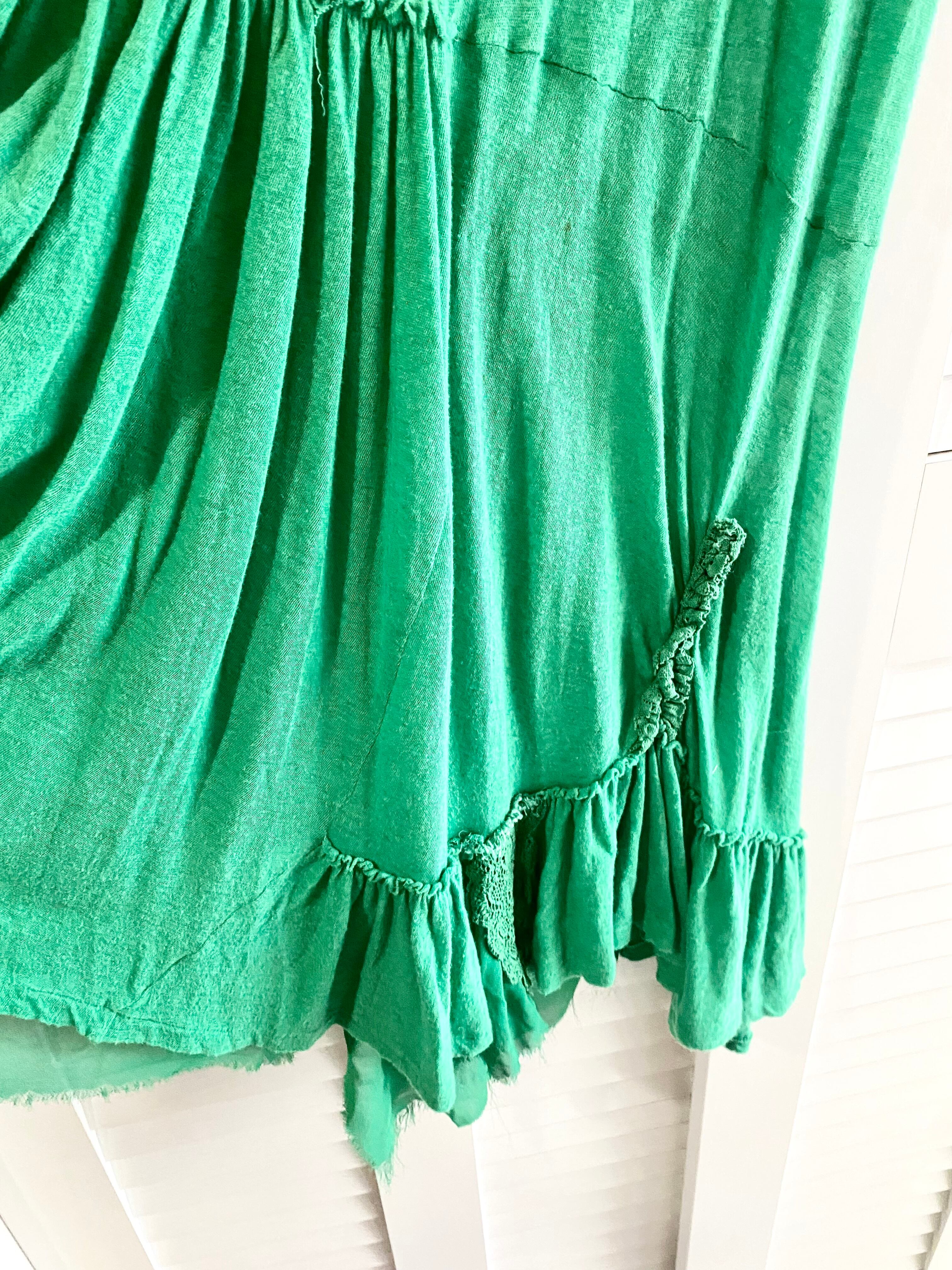 #238 SUNAOKUWAHARA イレギュラーヘム レース使いの製品洗カットソーワンピ グリーン