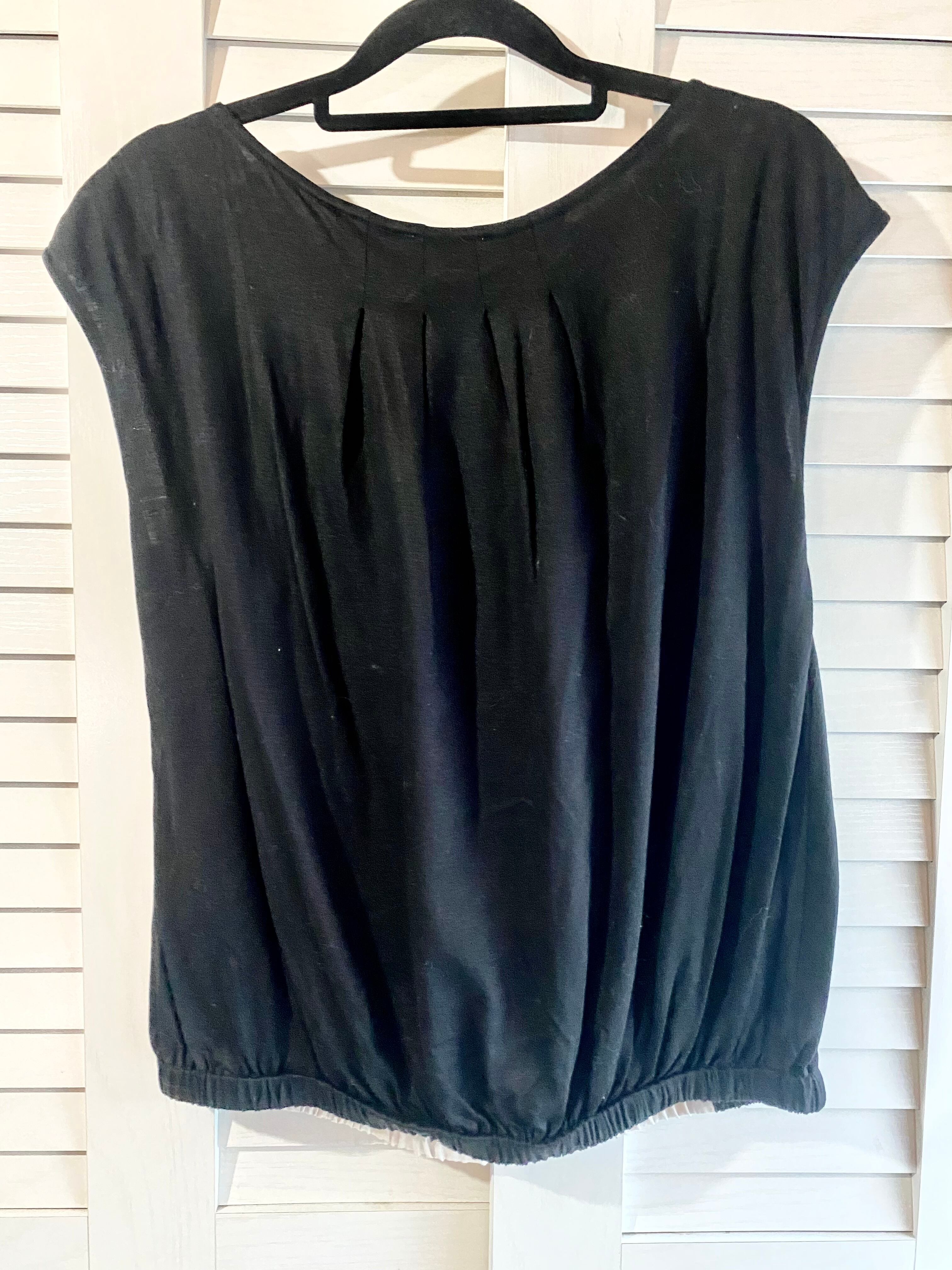 #239 LANVIN サテンBIGリボン カットソーコンビブラウス アンティークベージュ×ブラック