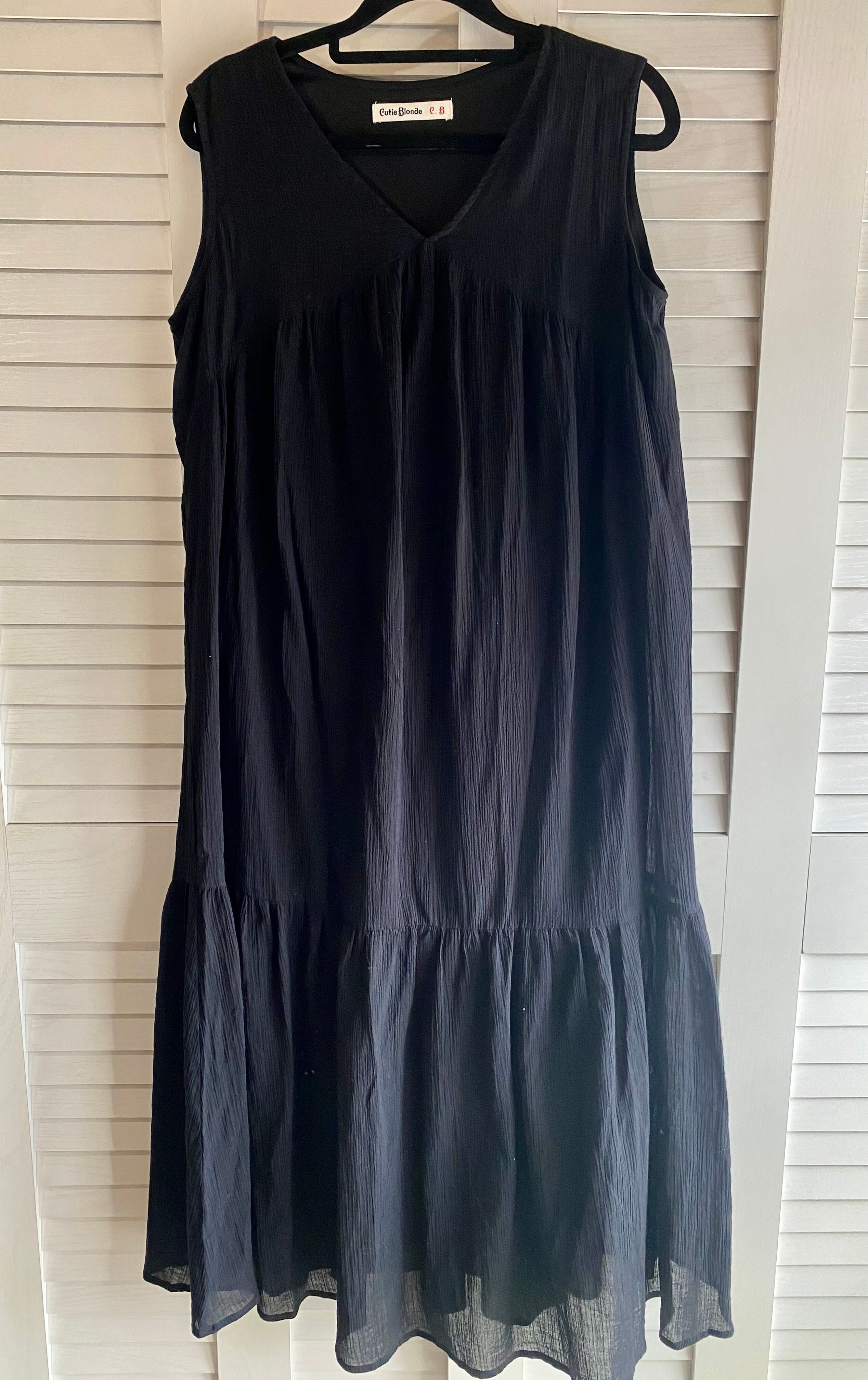 #241 Cutie Blonde コットン楊柳 ノースリーブティアードワンピ ブラック