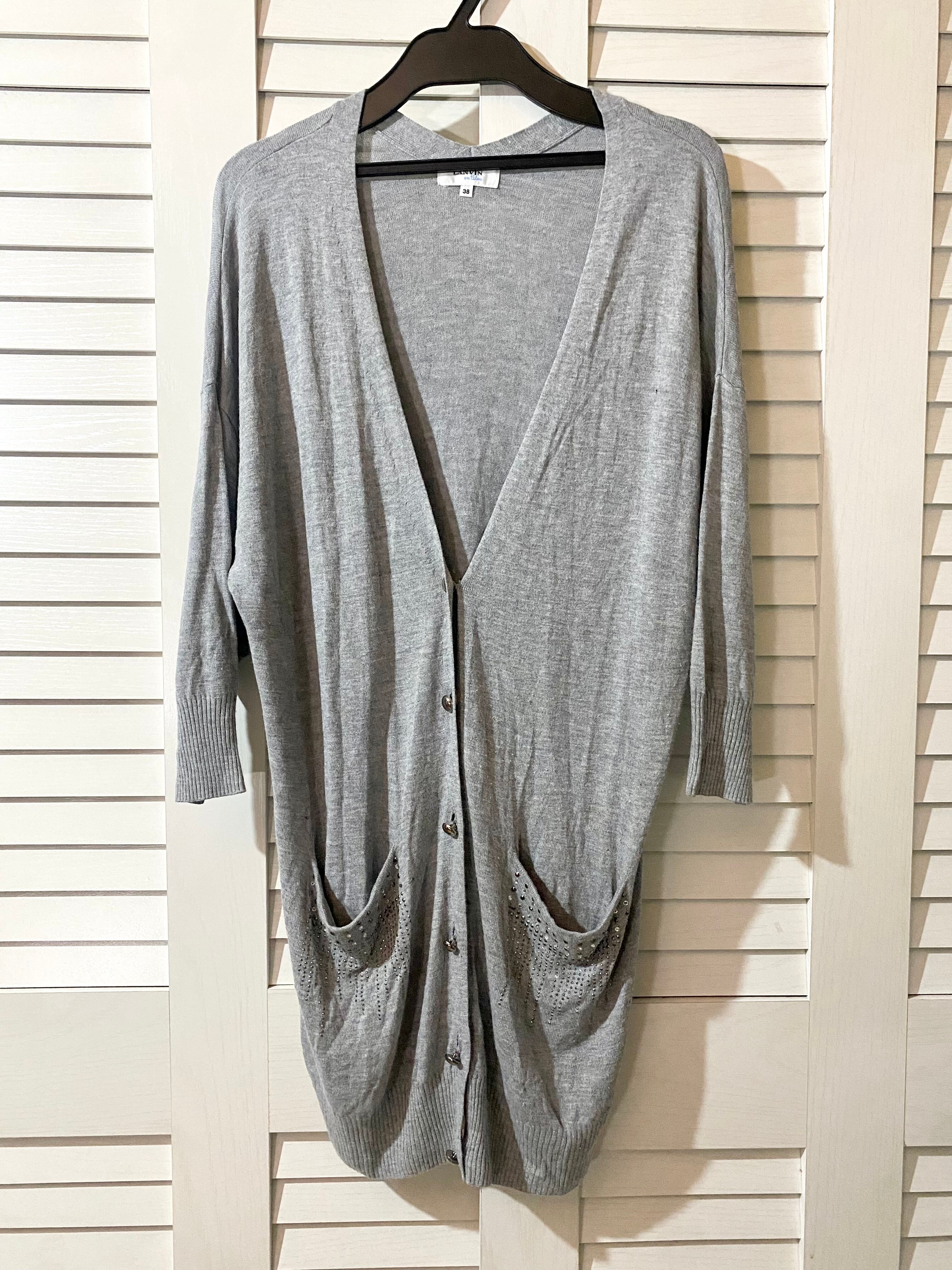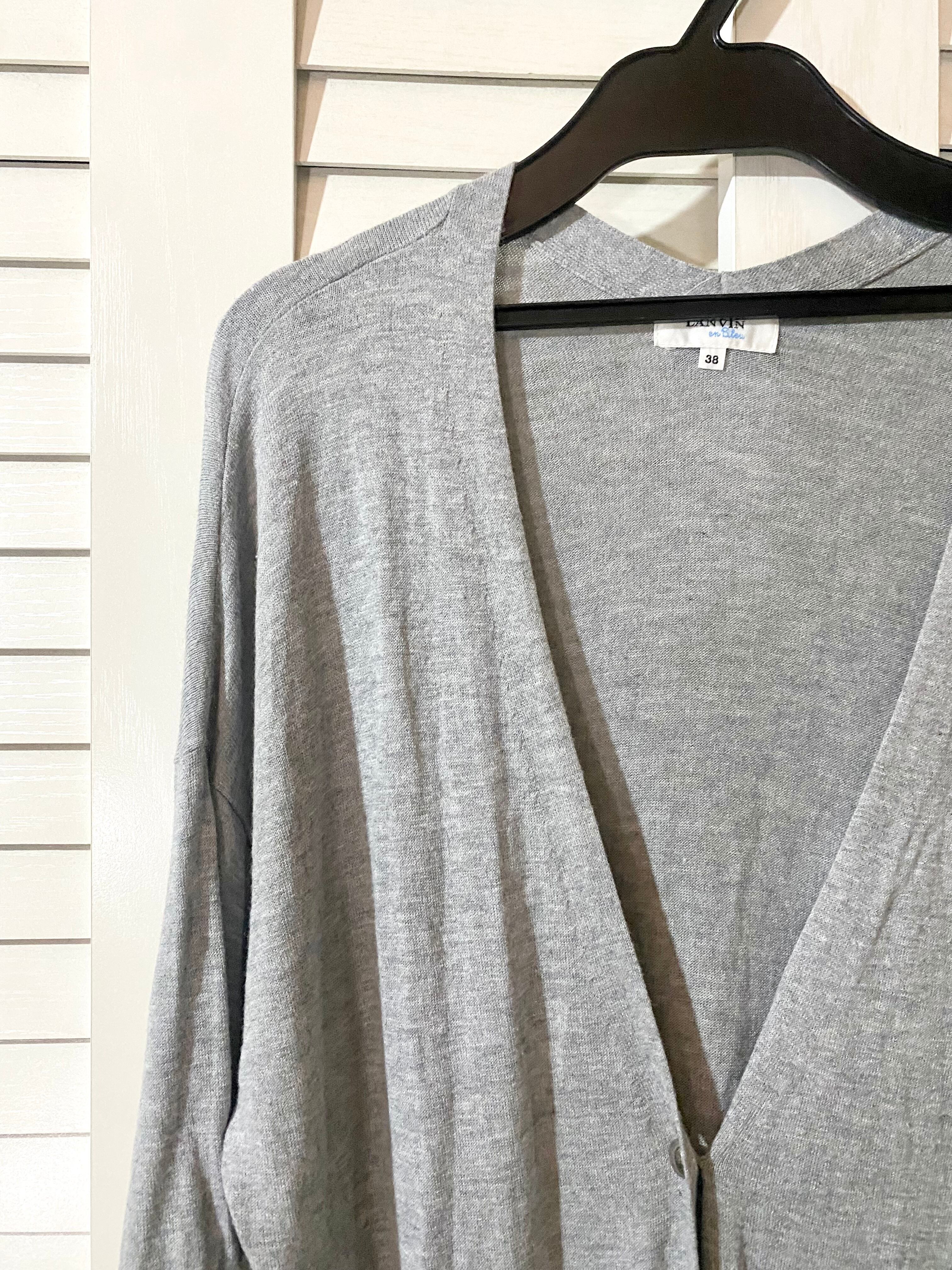 #241 LANVIN スワロフスキーポケット レーヨンニットロングカーデ ライトグレー