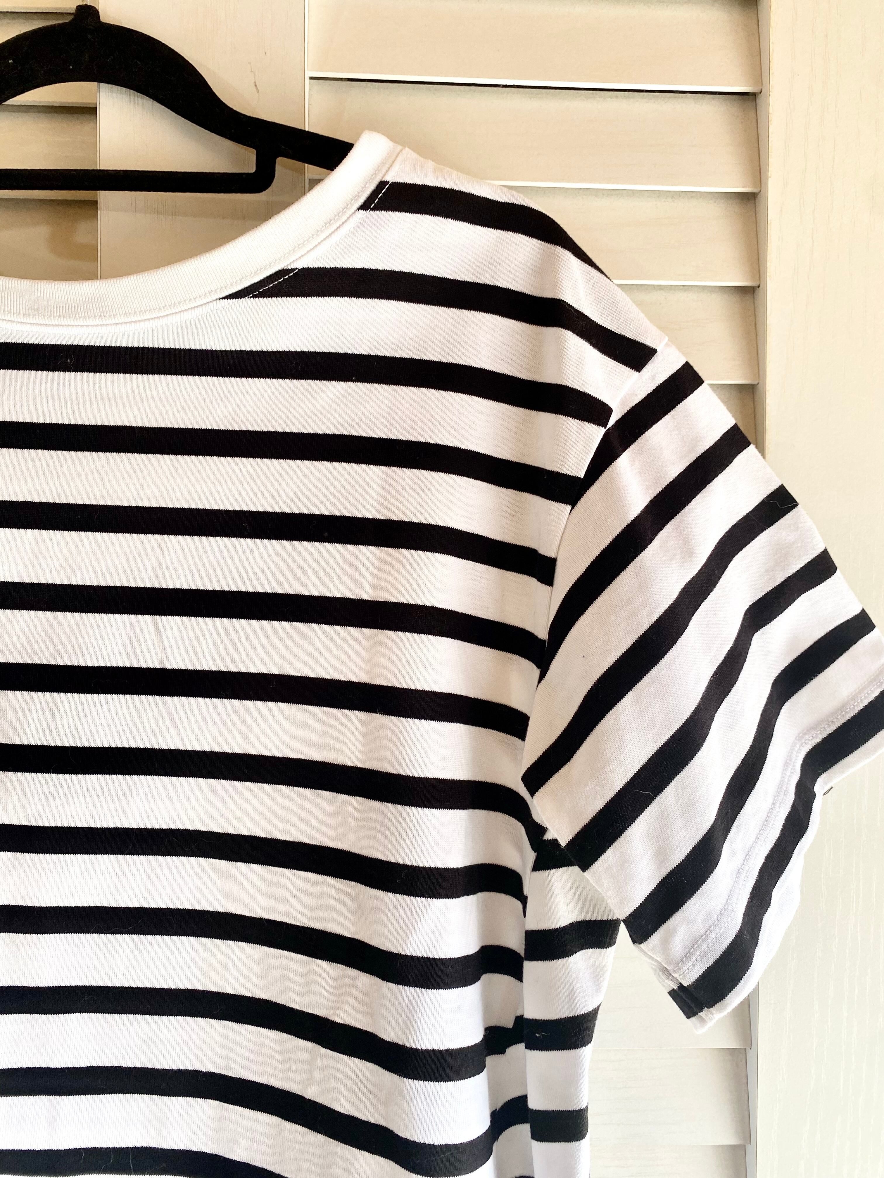 #242 Ray BEAMS バックフレアーデザインボーダーカットソー ブラック×オフホワイト