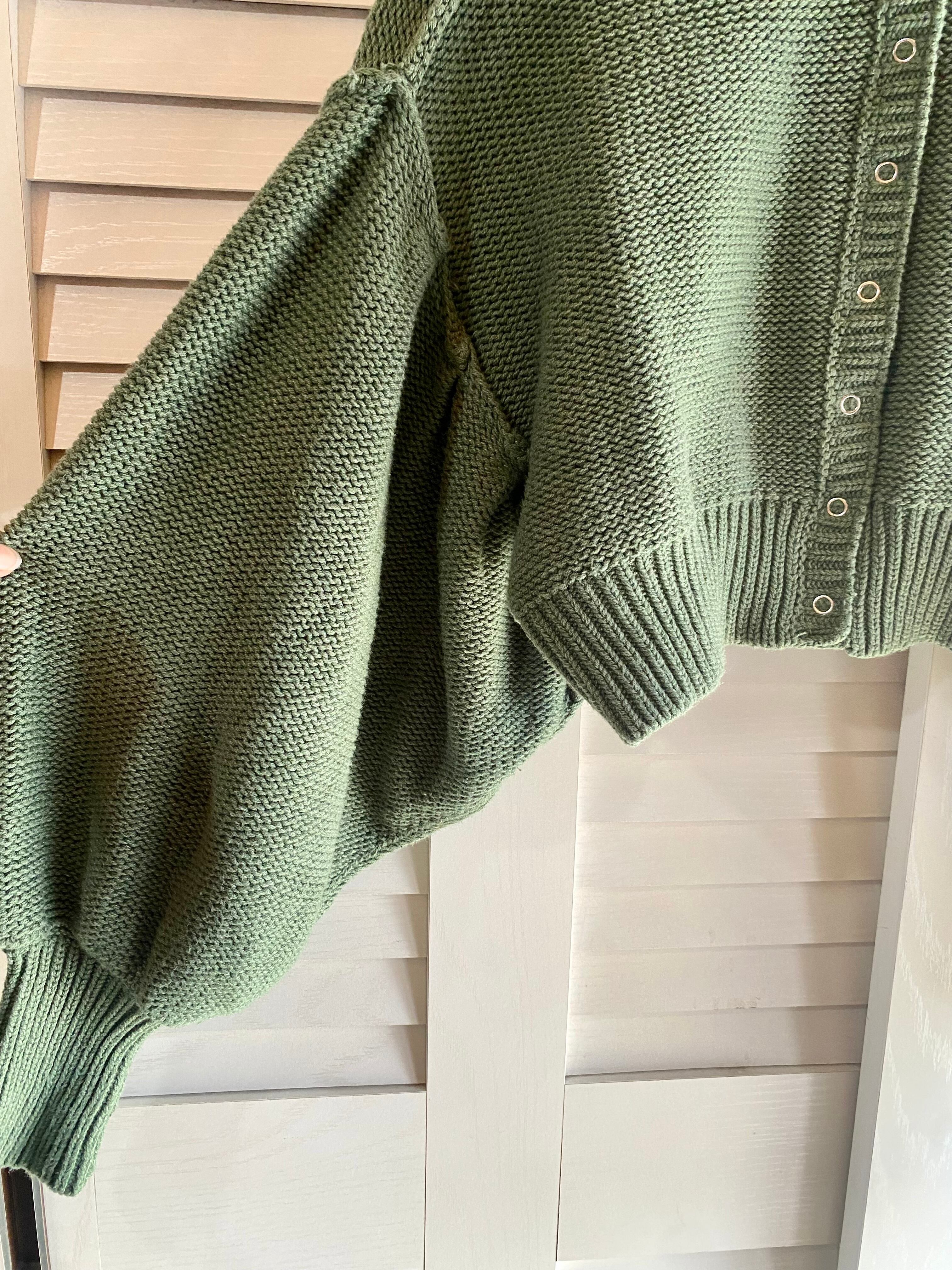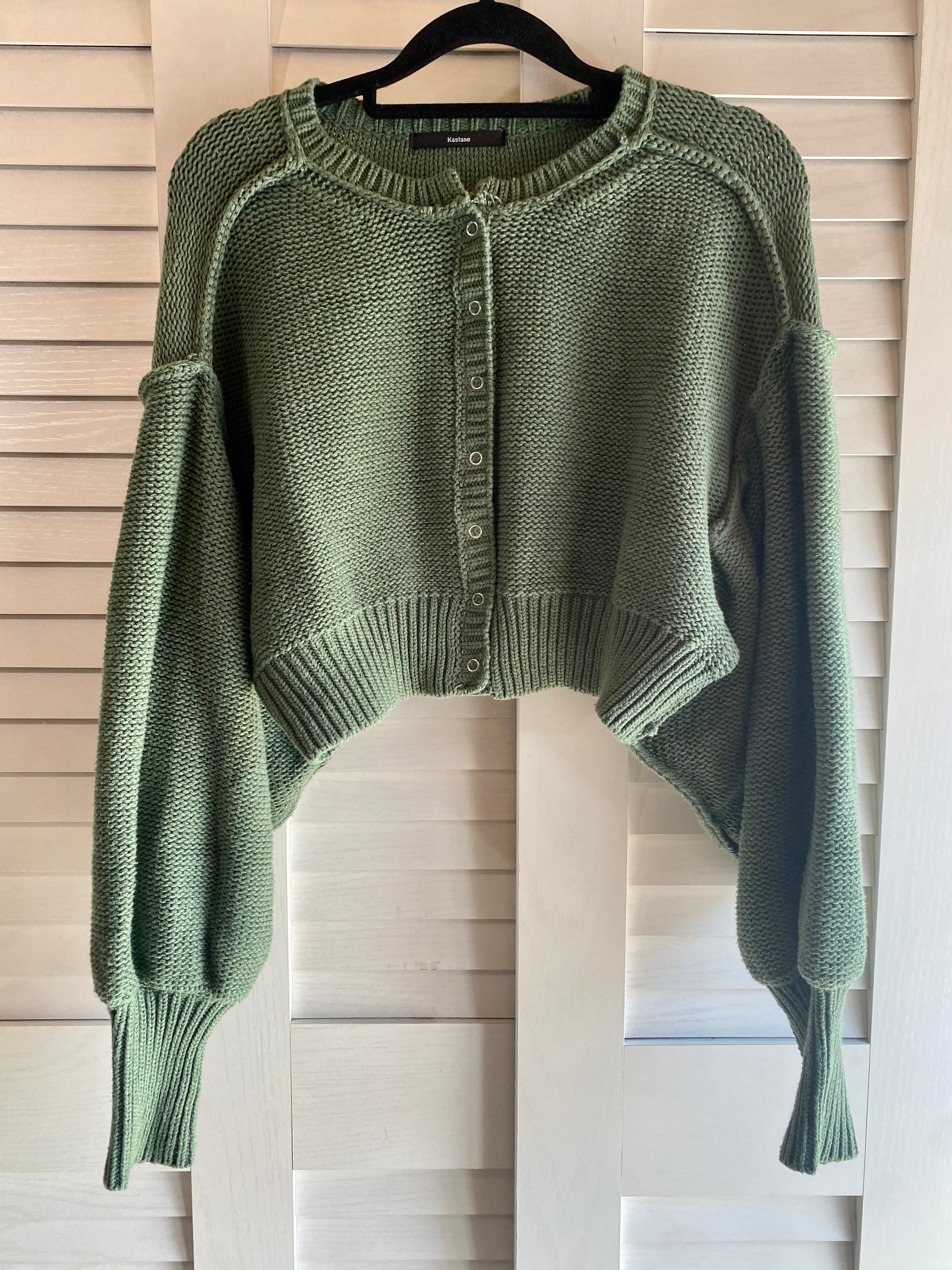 専用◎#242 kastane バルーンスリーブ ショート丈コットンニットカーデ オリーブ