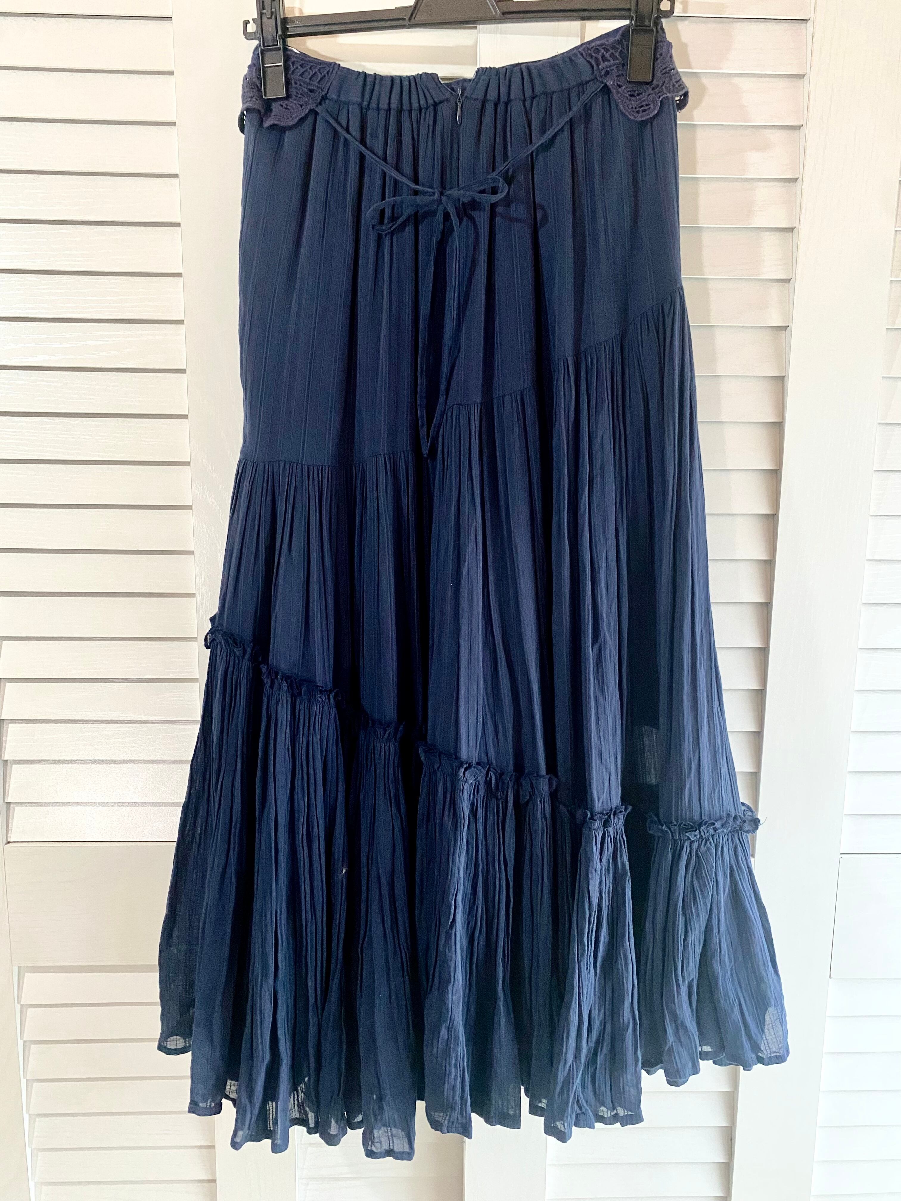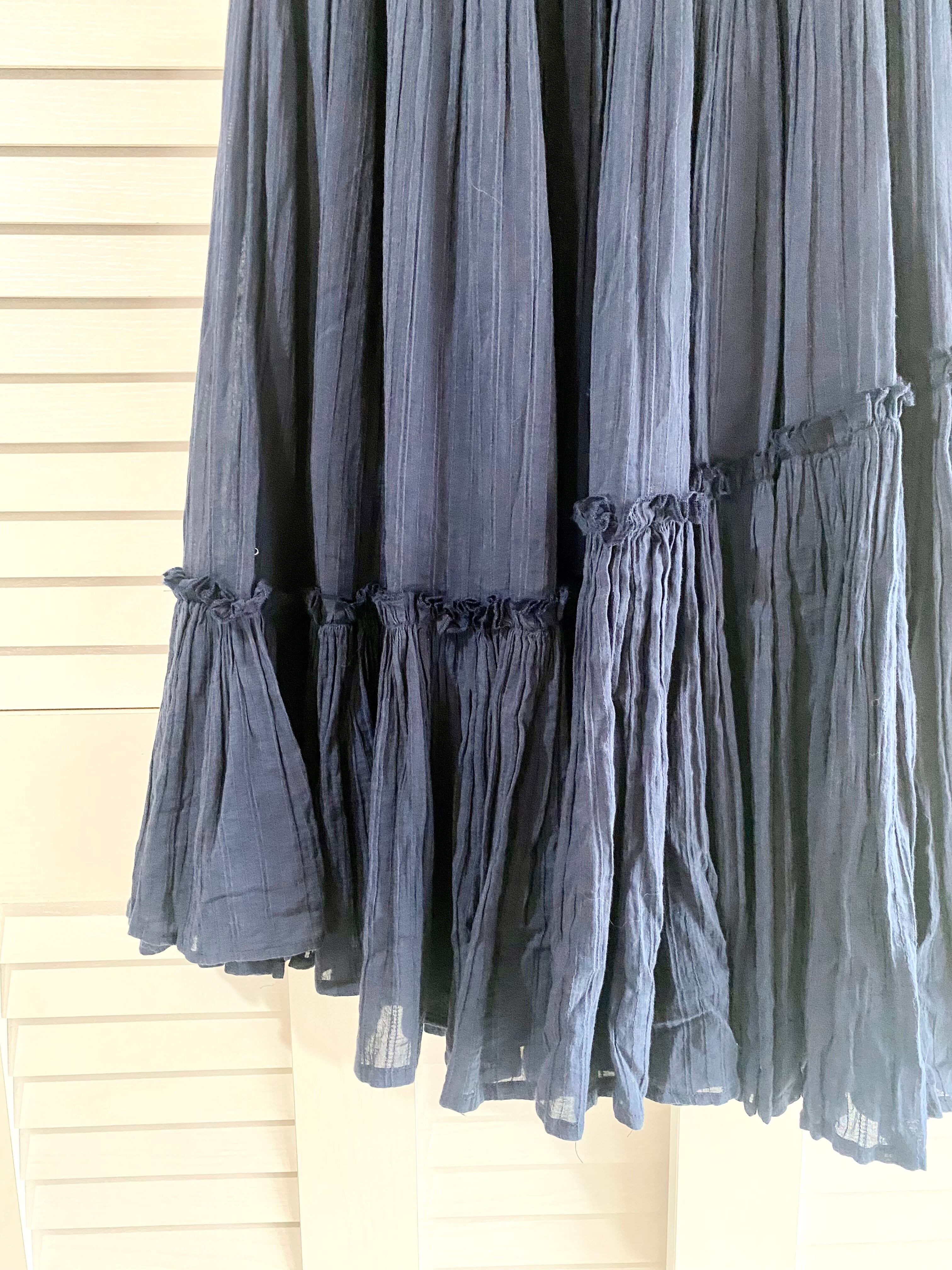 #243 REDYAZEL コットンレースウエストベルト 斜めティアード楊柳コットンボリュームスカート ネイビー
