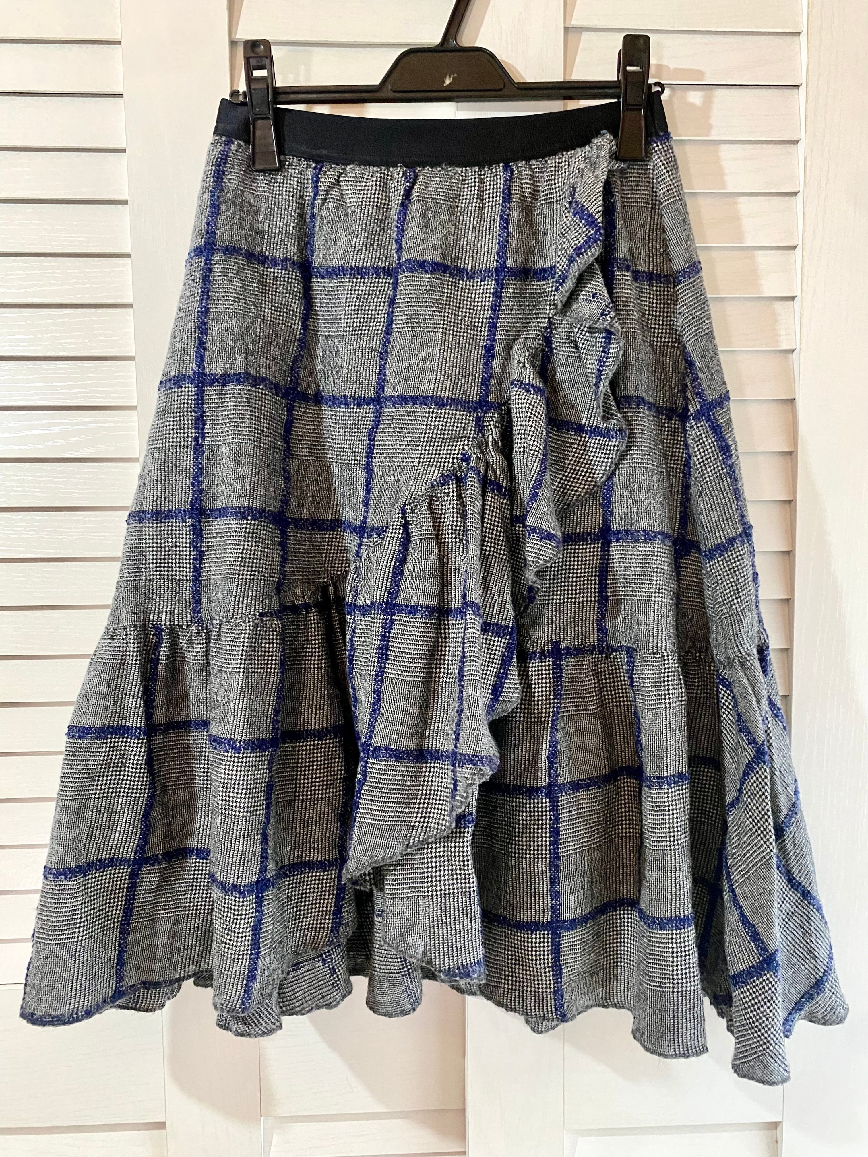 #245 NOBLE 製品洗ウール グレンチェックラッフルギャザースカート グレー
