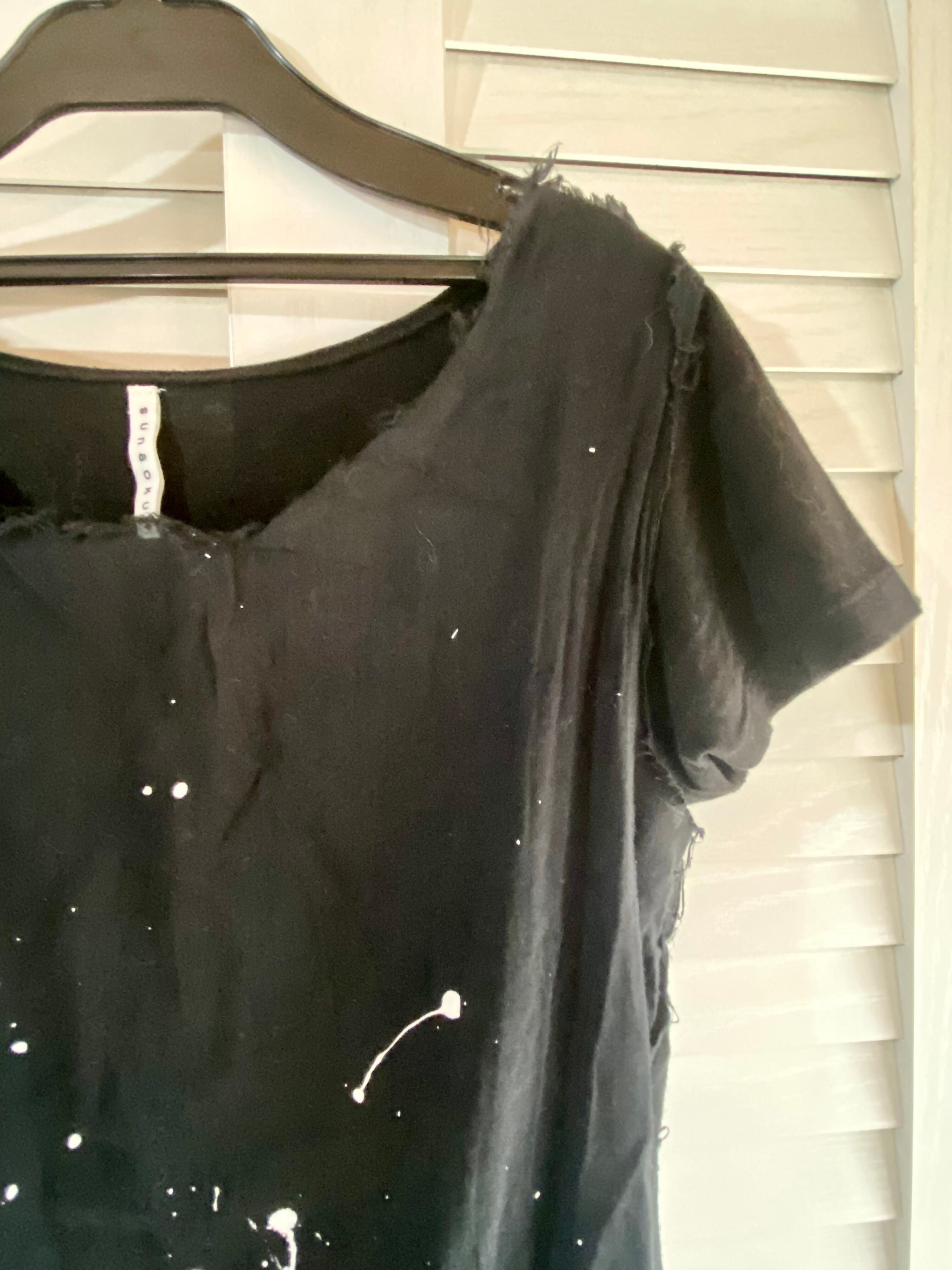 #250 SUNAO KUWAHARA ダメージ加工スプラッシュペイントガーゼ ドッキングカットソー ブラック