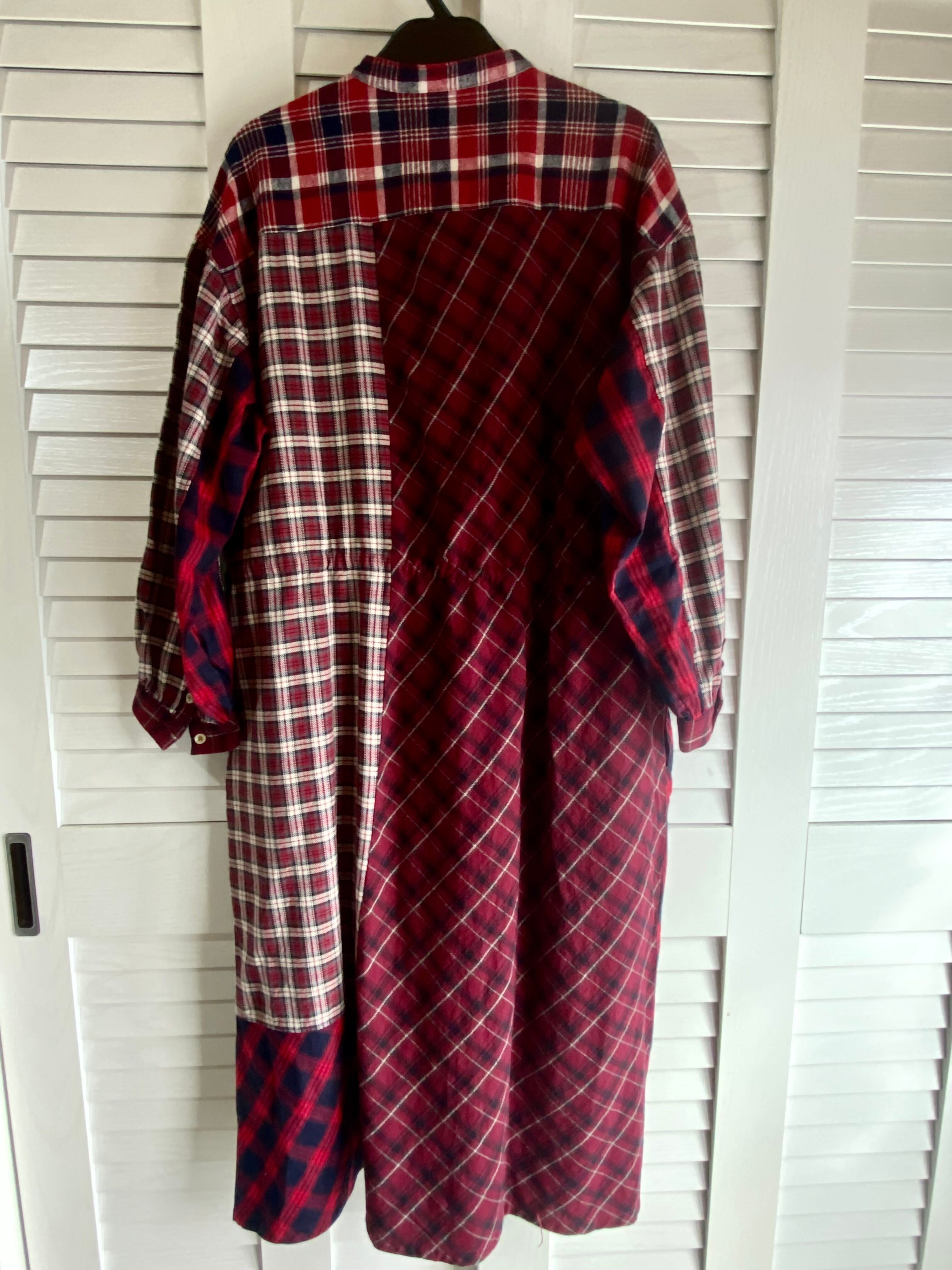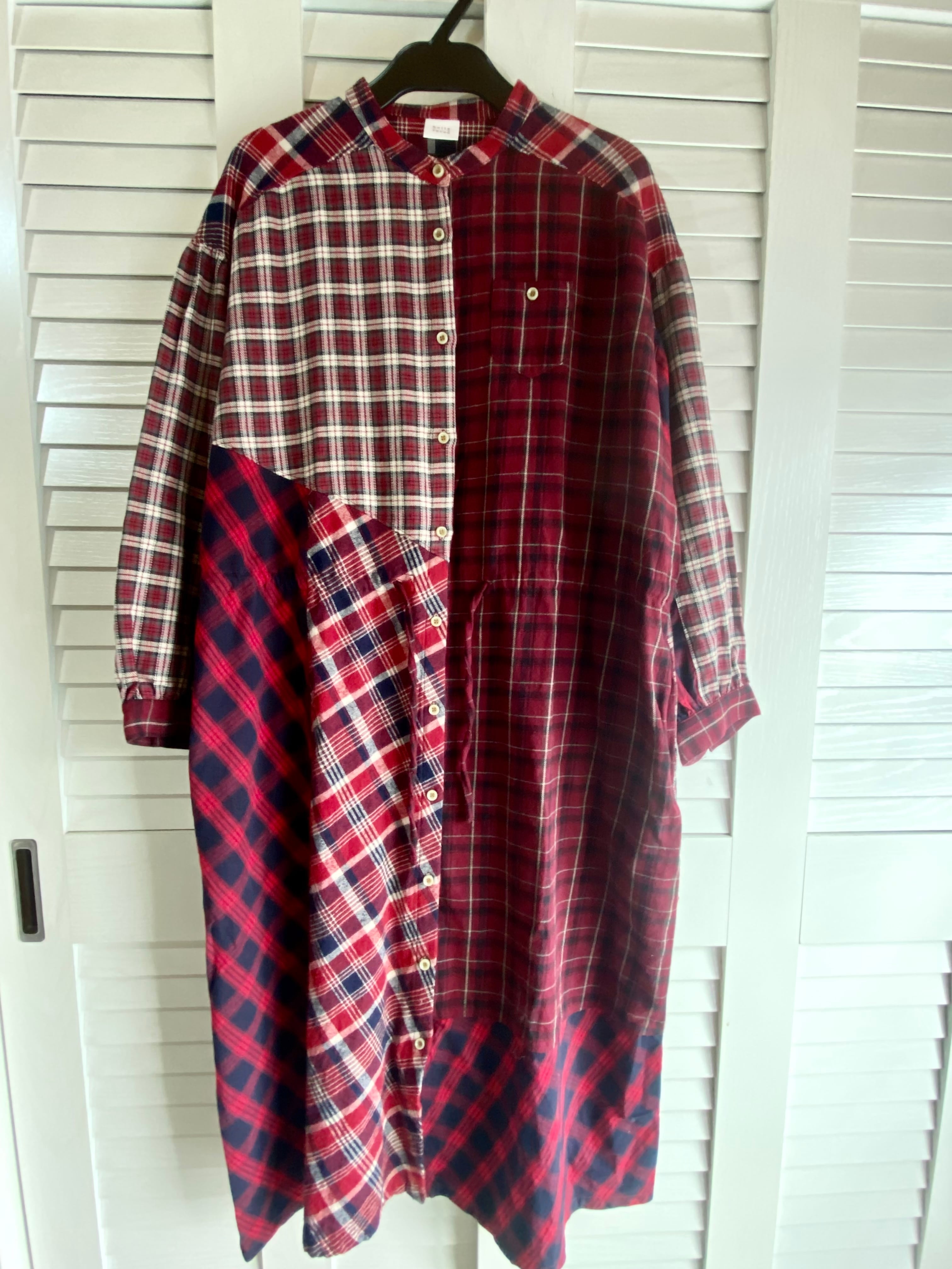 #252 bulle de savon クレイジーパターン タータンチェックパッチワークシャツワンピ レッド