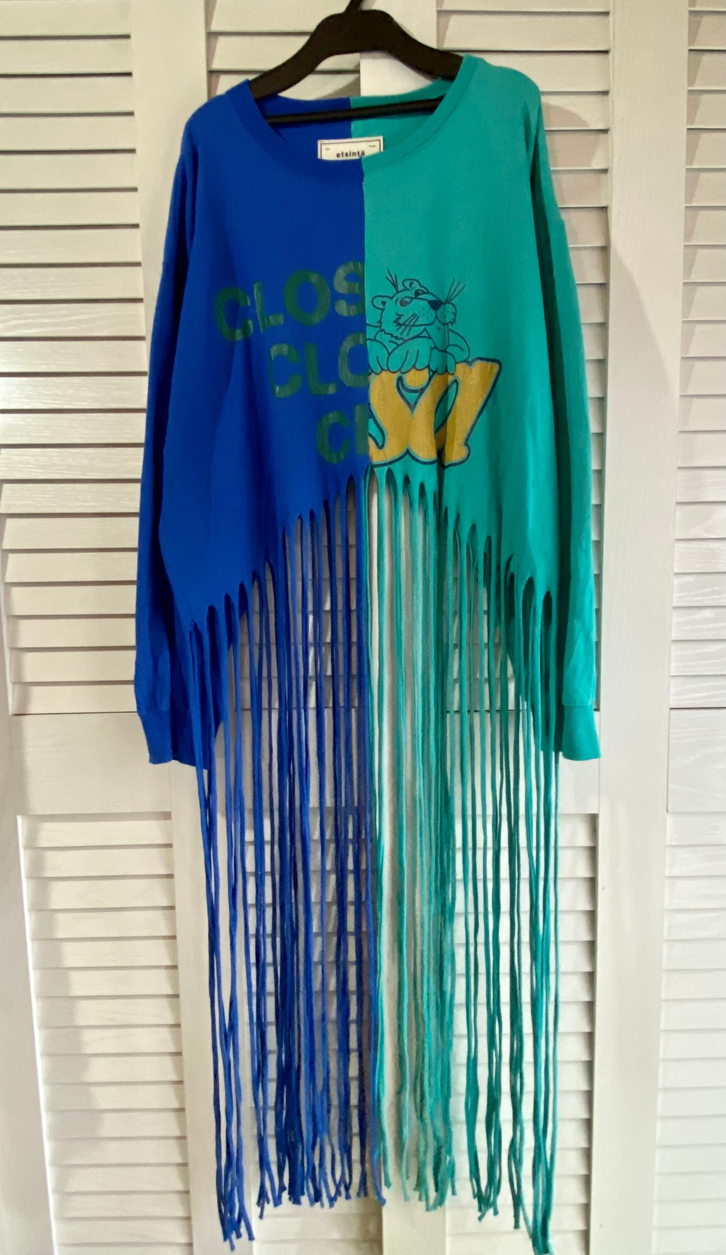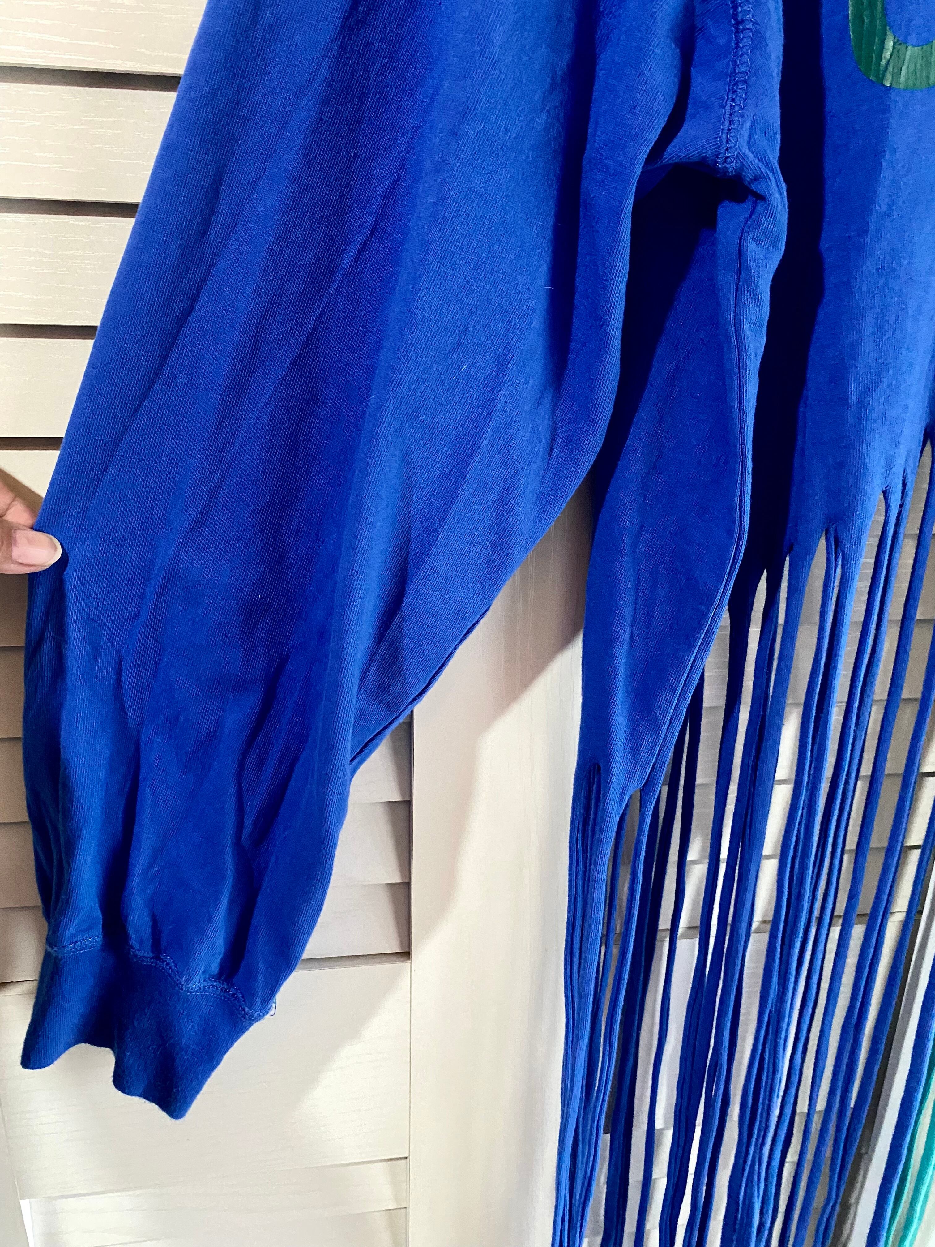#257 etsinta リメイクデザイン スパゲッティフリンジカットソーワンピ ブルー×グリーン