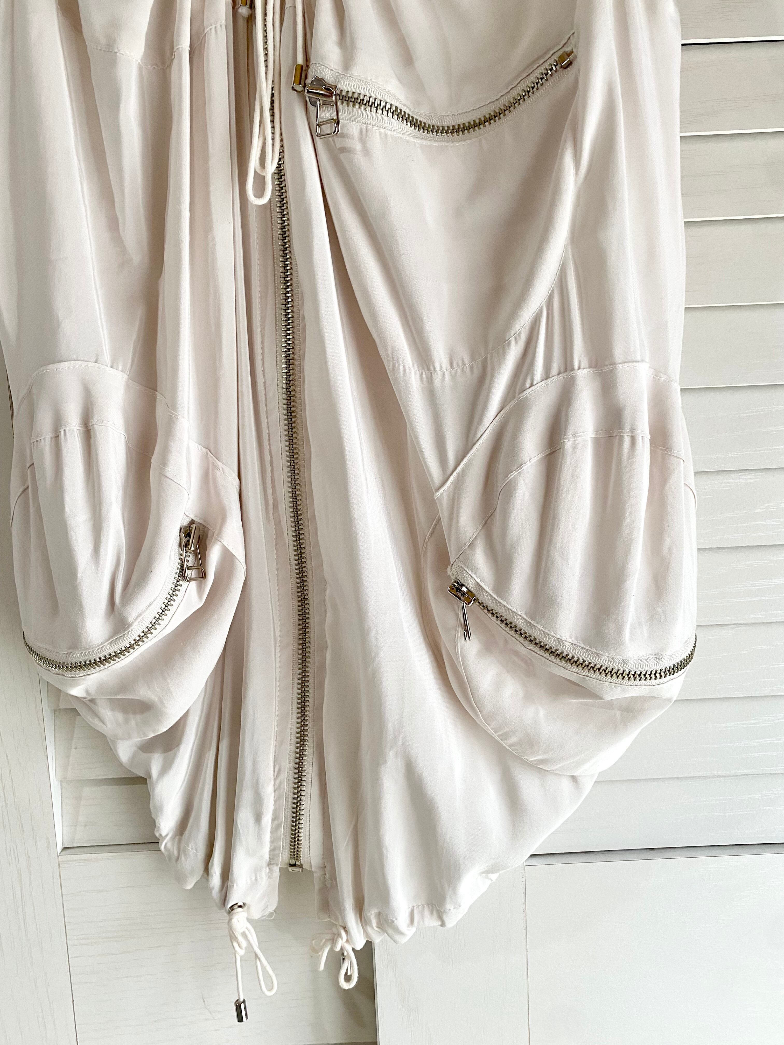 #258 Titilate Valet トロミ素材 ドロストロデザイン ラウンド立体ポケット ジップアップジレ アイボリー