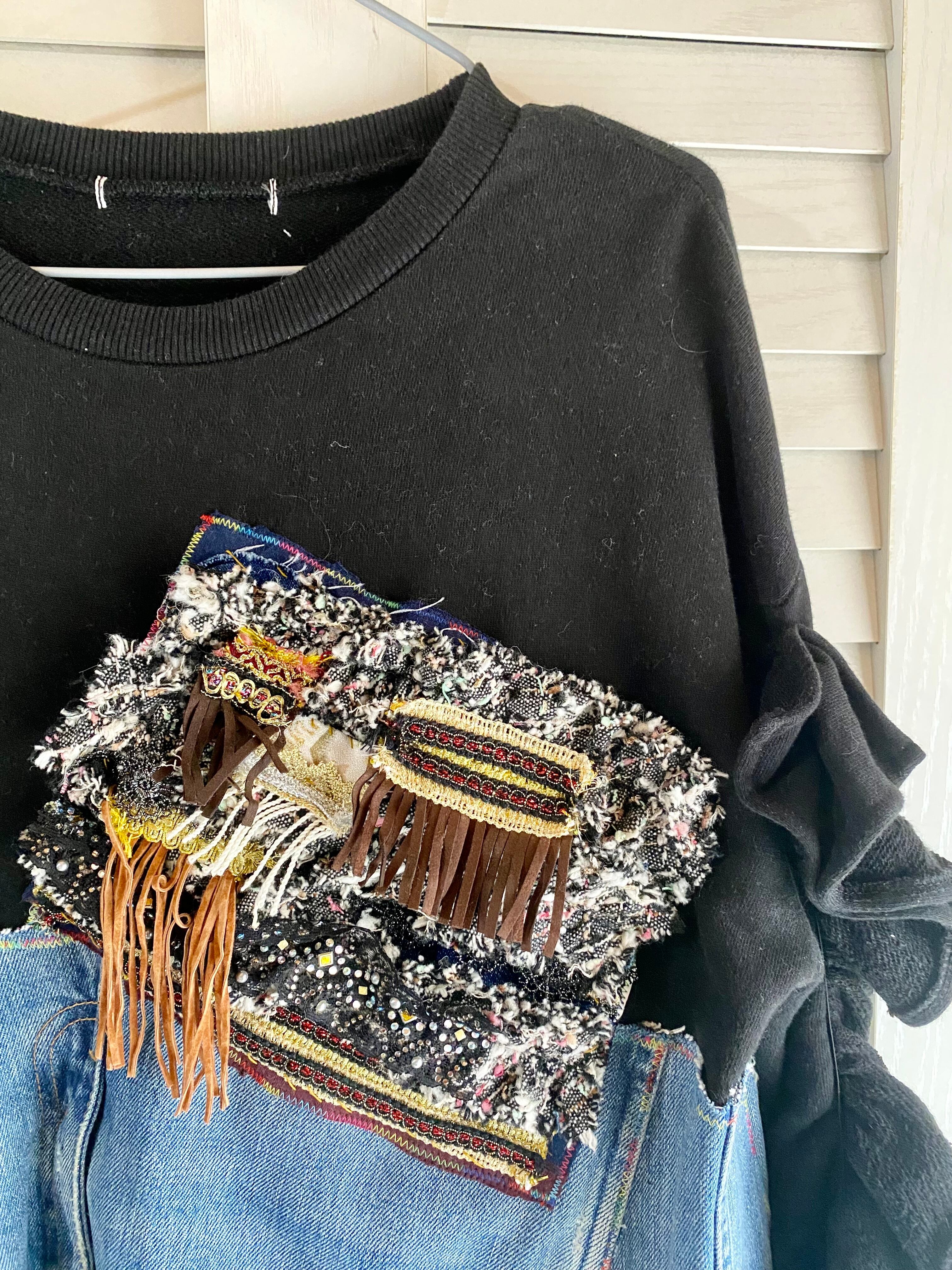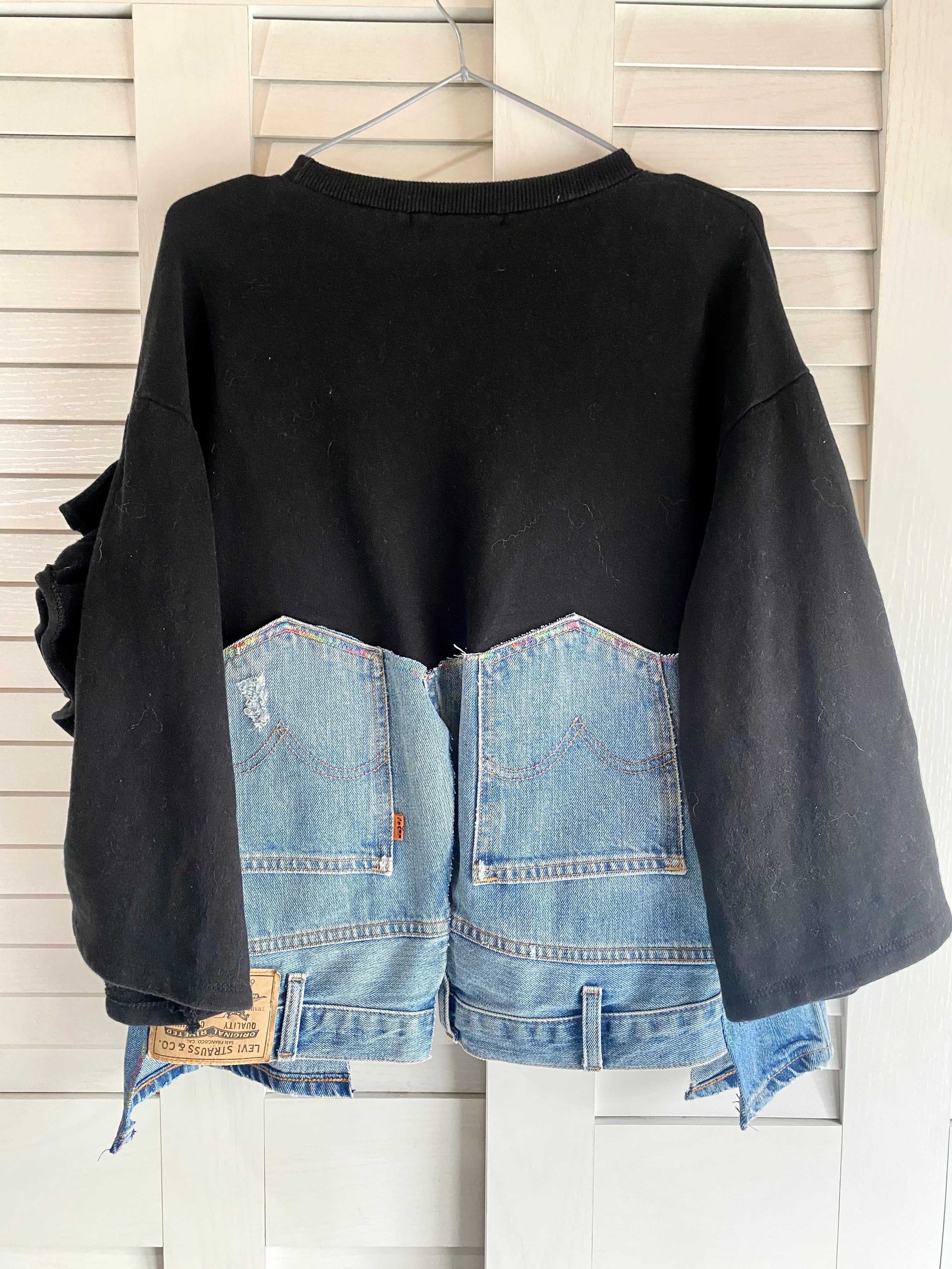 【リメイク1点物】リーバイスジーンズドッキングスウェットプルオーバートップス