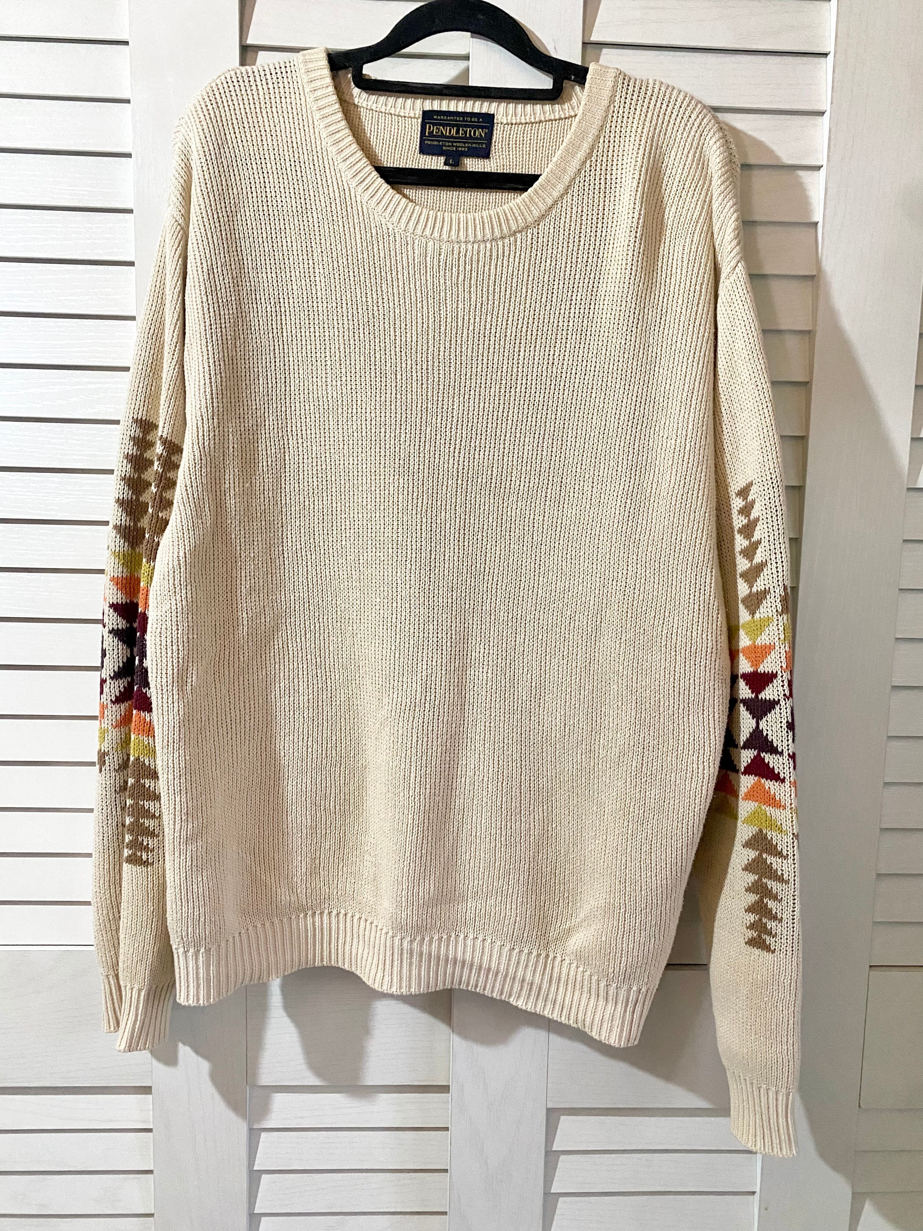#270 PENDLETON カラフルオルテガ コットンニットセーター ライトベージュ